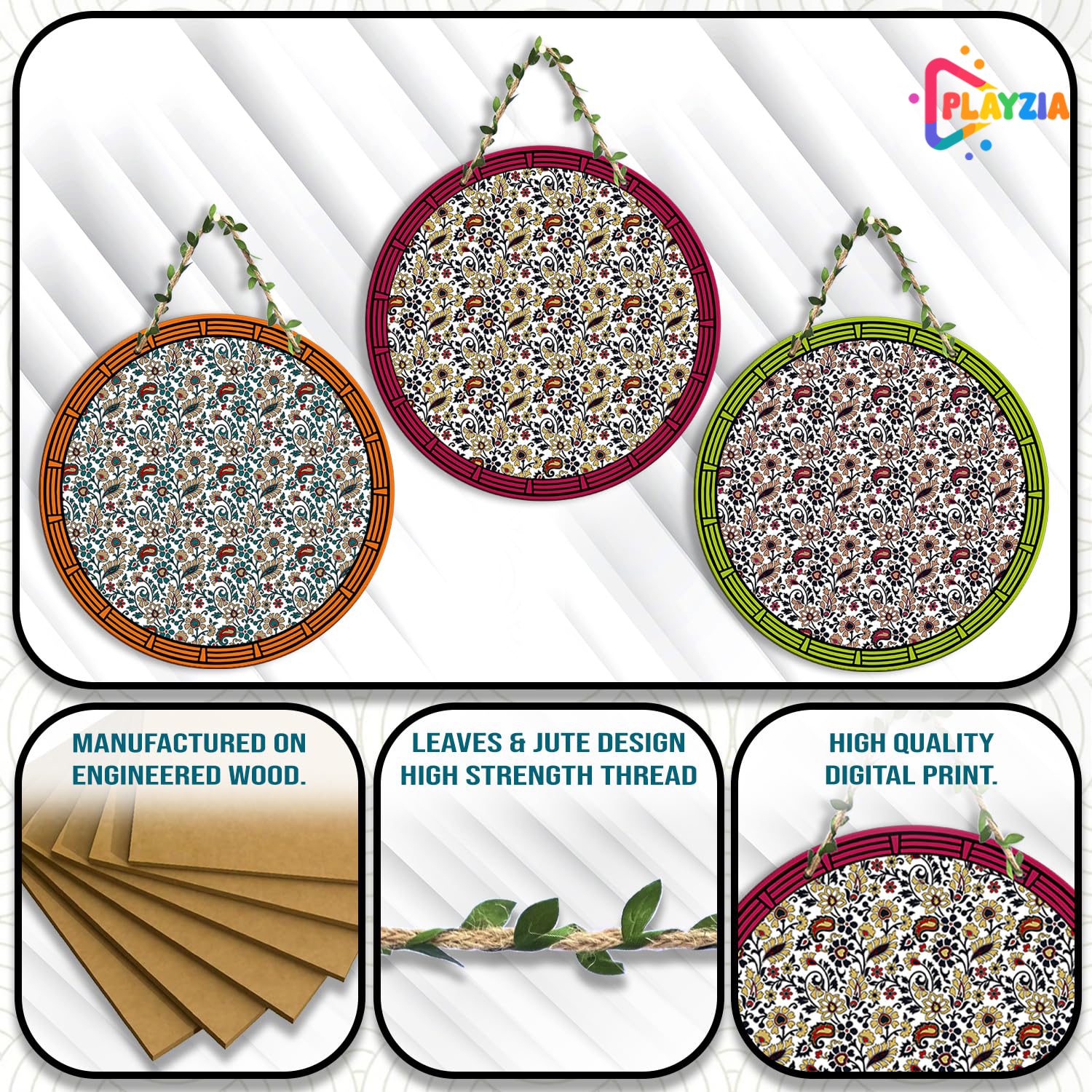 Enhance your home or workspace with the Playzia 3 Circle Set Wall Hanging. Crafted from premium engineered wood and finished with elegant matte artwork, these decorative wall pieces add a stylish and modern charm to your interiors ā perfect for bedrooms, living rooms, and gifting.