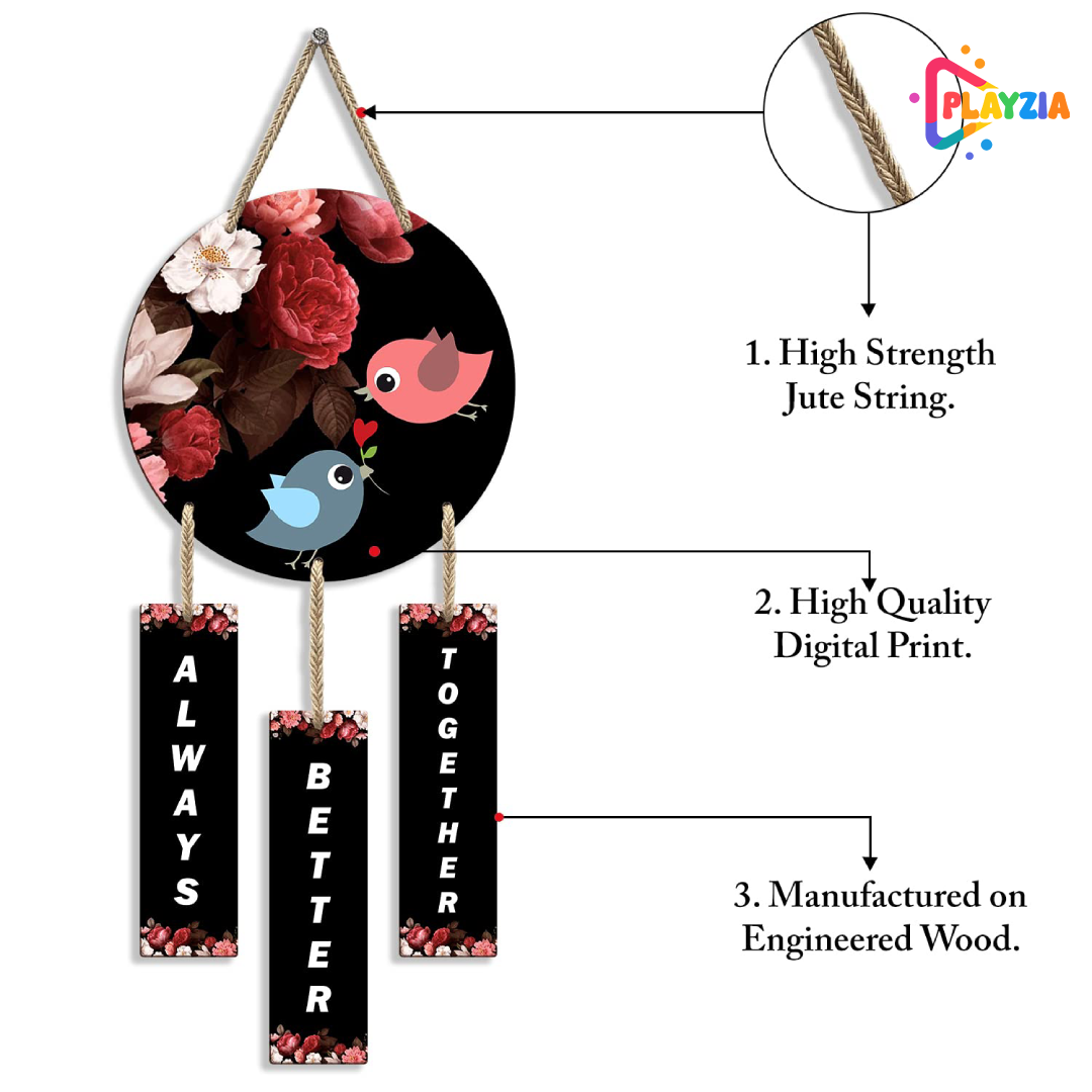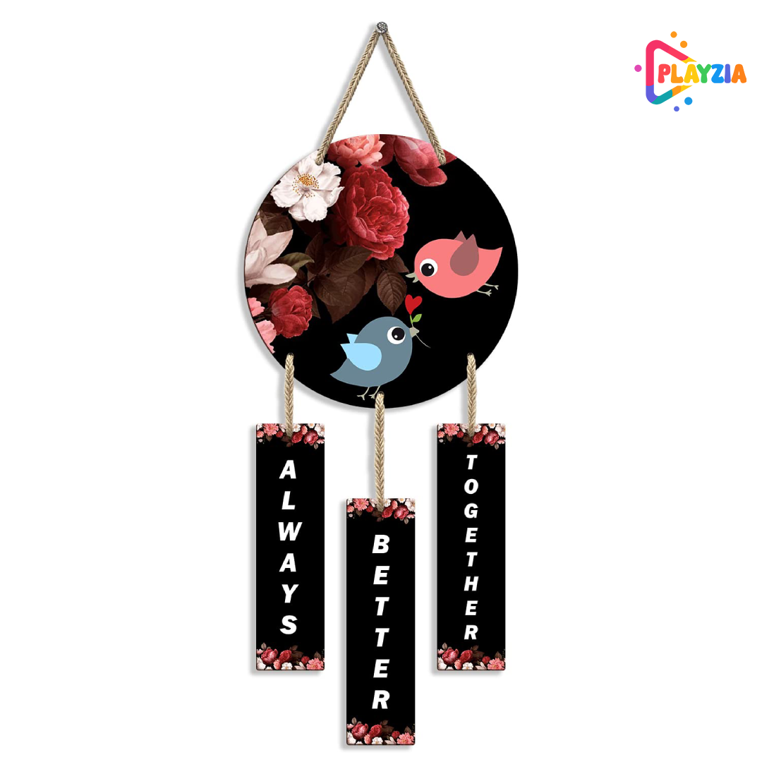 Playzia “Always Better Together” Wooden Wall Hanging | Home Décor Wall Art for Living Room & Bedroom | Decorative Wooden Wall Décor for Home | Modern Room & Office Decoration (64 × 25 cm)