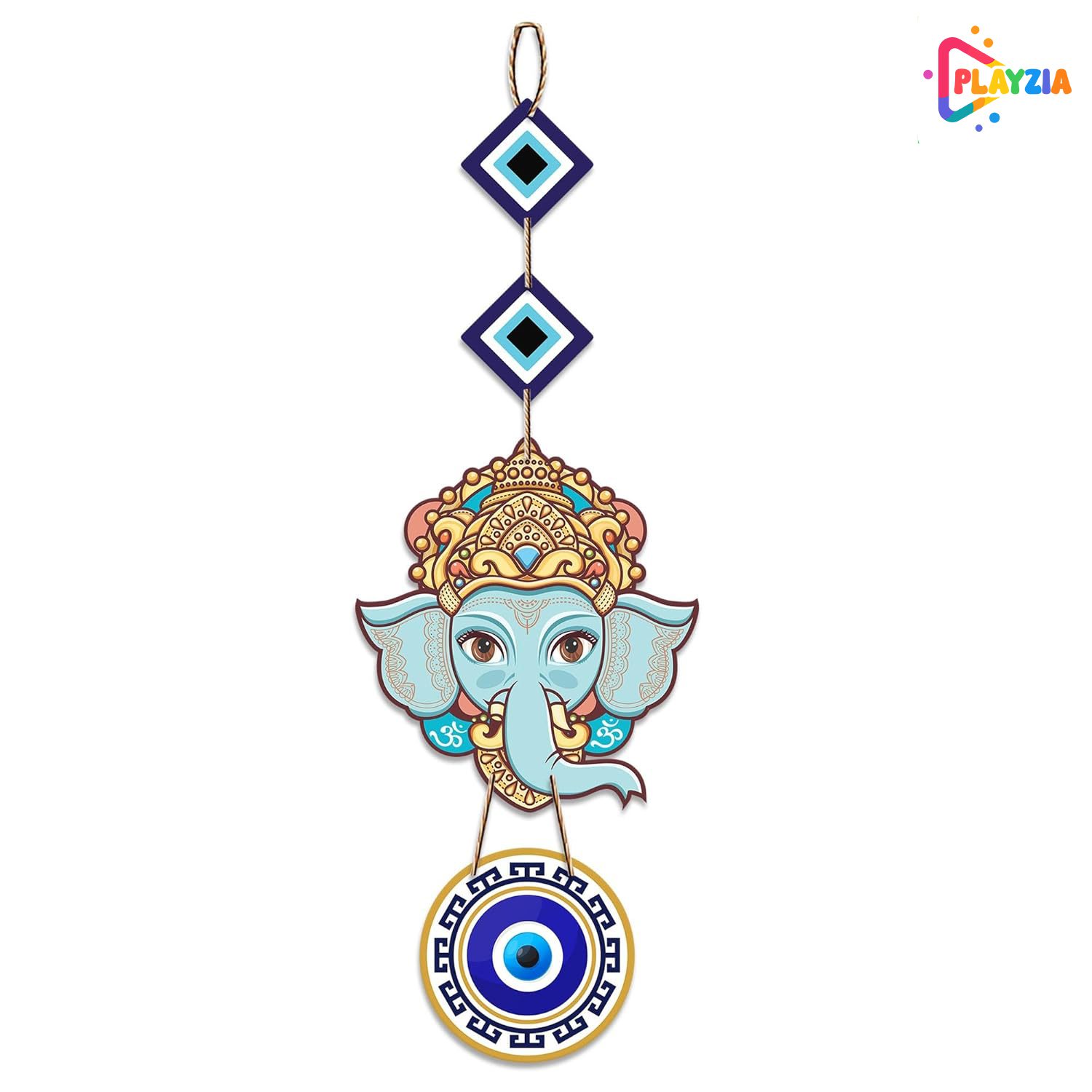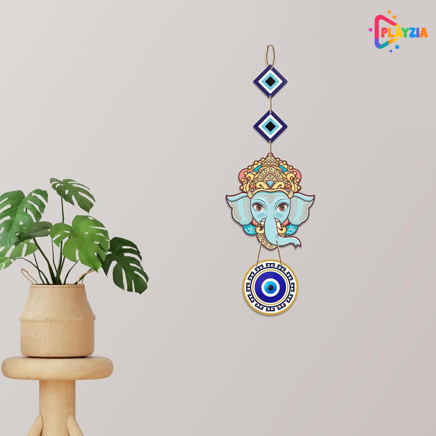 Playzia Attractive Designer Ganesh Wooden Wall Hanging | Modern Decorative Artwork for Home & Living Room | Peace Charm Door Accent Hanging