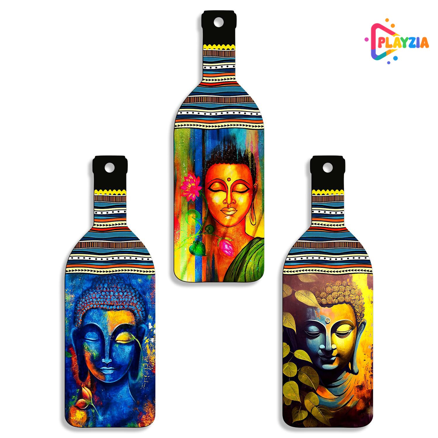 Playzia “Budha” 3-Bottle Wall Hanging | Artistic Wall Décor for Living Room, Meditation Space & Home Interiors