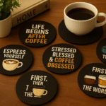 Add a touch of charm to your coffee moments with the Playzia “Coffee Vibes” Wooden Coaster Set. Crafted from high-quality MDF with vibrant prints, these round coasters protect your table surface while enhancing your décor. Comes with a matching stand for easy storage.
