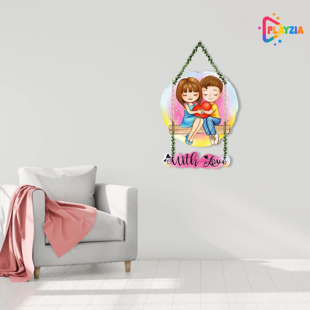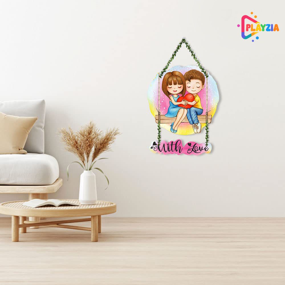 Playzia “Cute Couple” Wooden Wall Hanger for Home Décor | Romantic Gift for Girlfriend | Modern Wall Decorative Item for Bedroom & Living Room