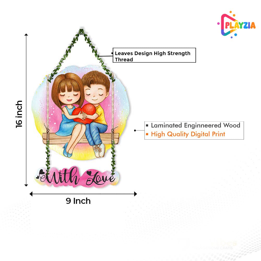 Playzia “Cute Couple” Wooden Wall Hanging for Home Décor | Couple Gifts | Valentine Decorative Artwork for Bedroom & Living Room