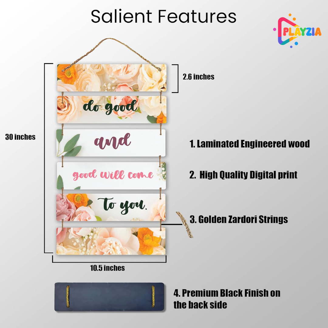 Playzia “Do Good” Wooden Wall Hanging | Motivational Quote Wall Art for Living Room & Bedroom | 6-Layer Engraved MDF Design | Positive Wall Décor for Home & Office (30 × 10.5 × 2.6 Inch)