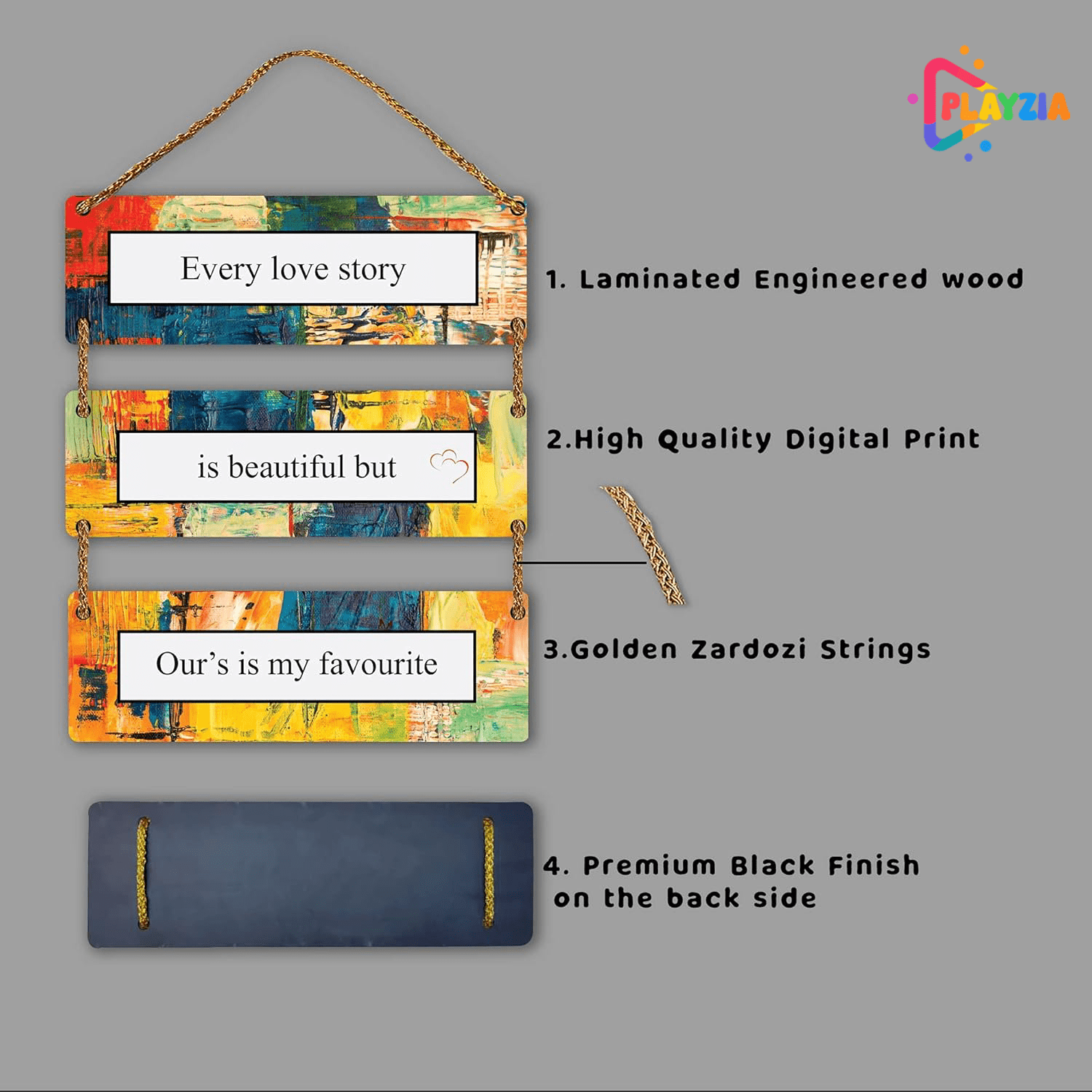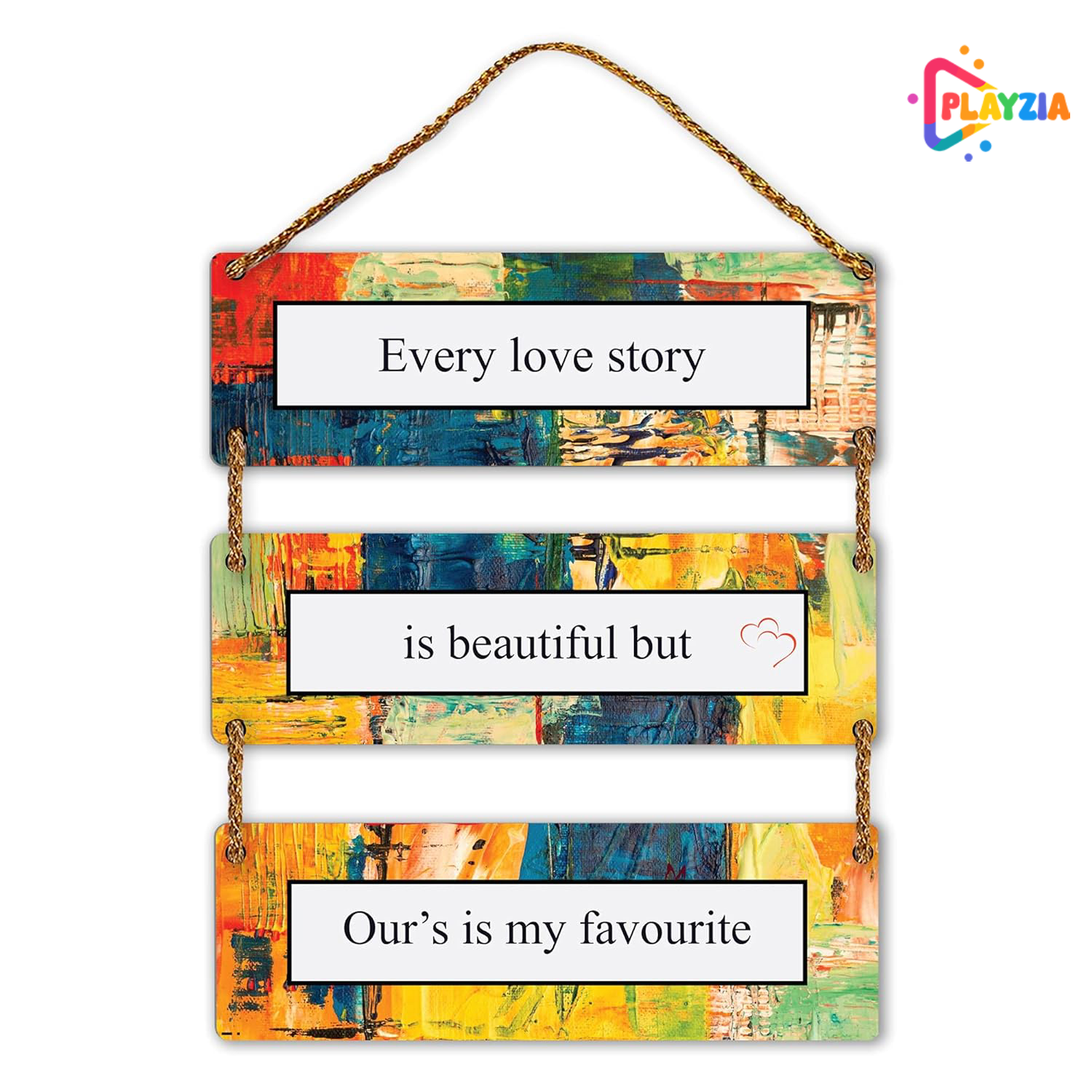 Celebrate love with the Playzia “Every Love Story Is Beautiful” Wooden Wall Hanging. Made from premium MDF with a smooth matte finish, this elegant décor piece adds a romantic and cozy touch to bedrooms, living rooms, or personal spaces — perfect for gifting to couples.
