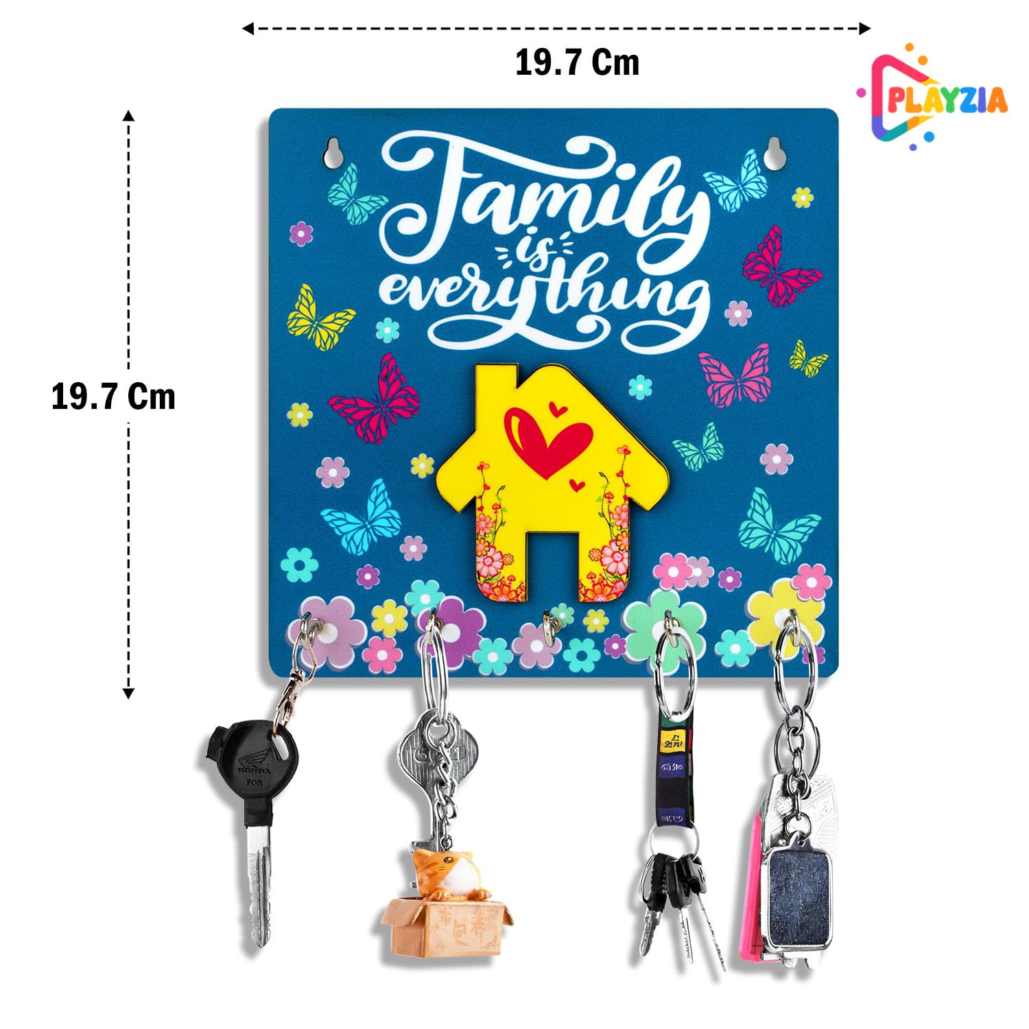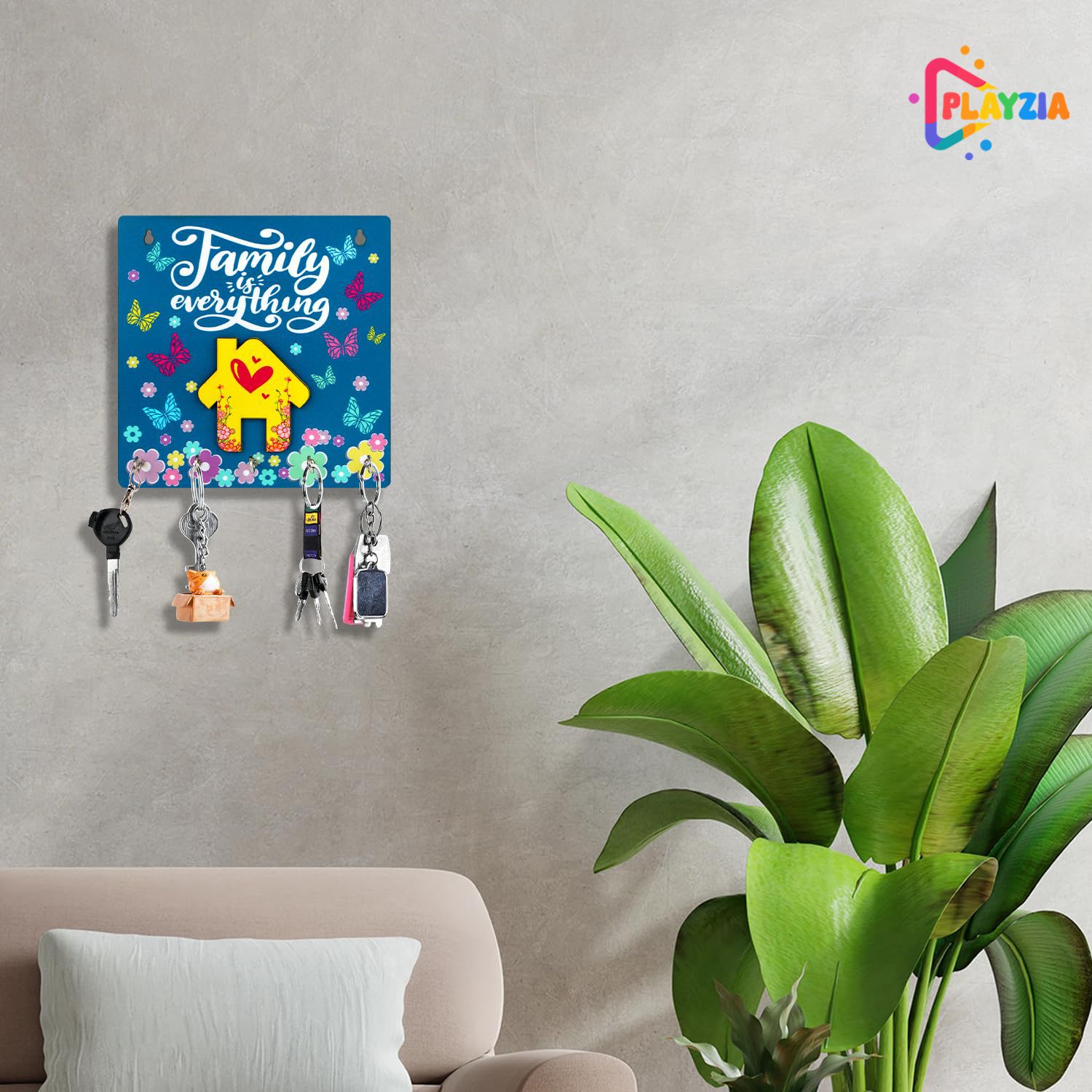 Playzia “Family is Everything” Key Chain Holder for Wall | Wooden Key Hanger with 5 Hooks | Decorative Wall Mounted Organizer for Home & Office
