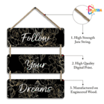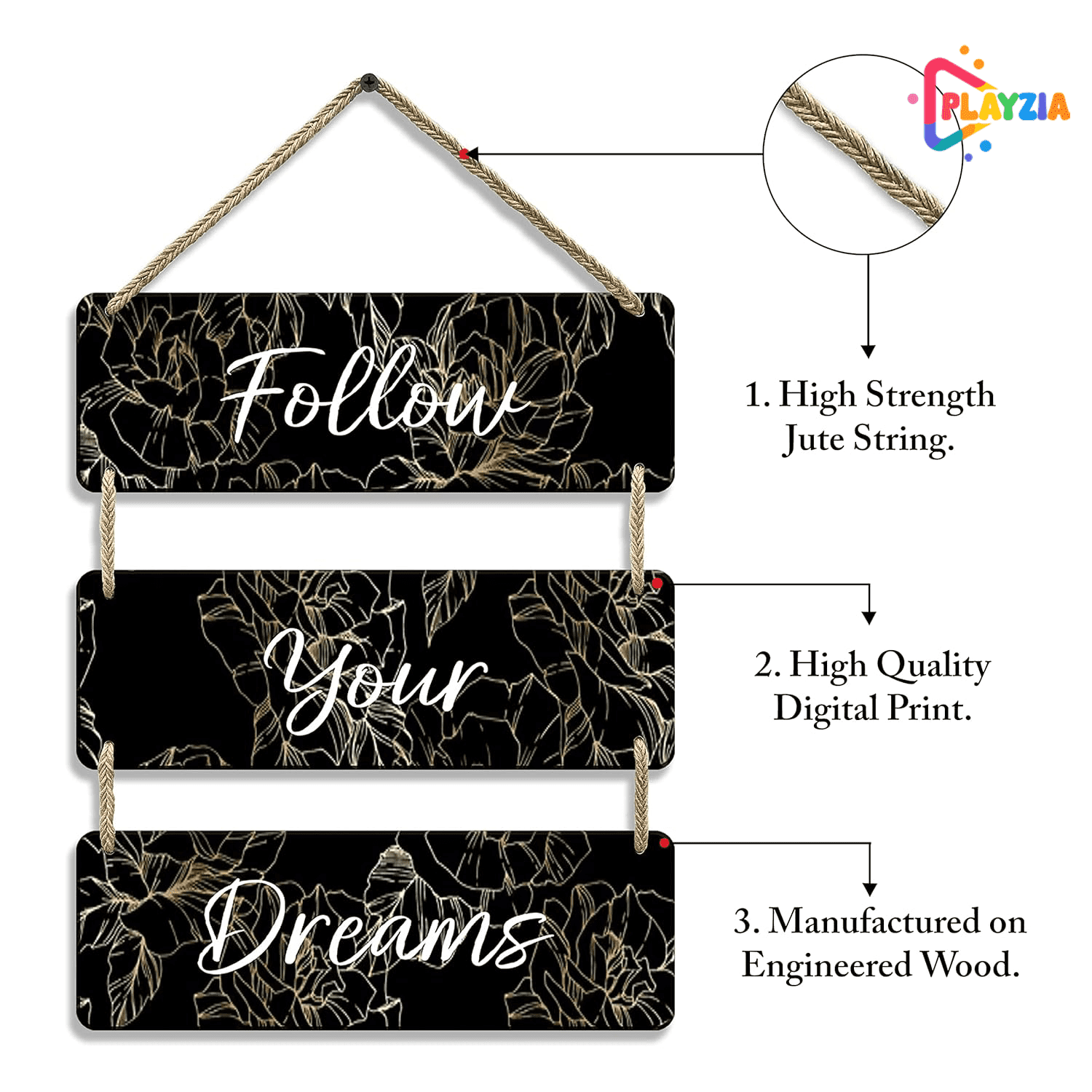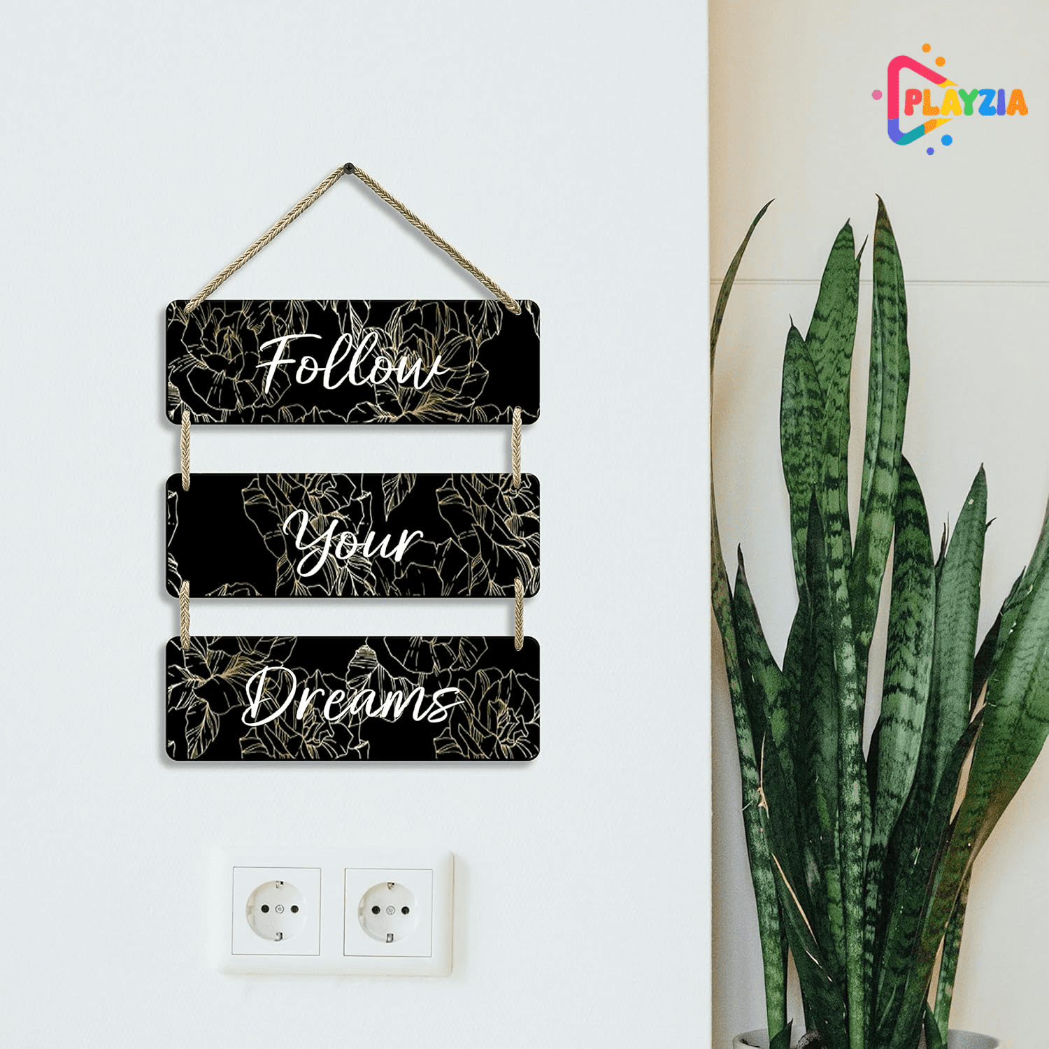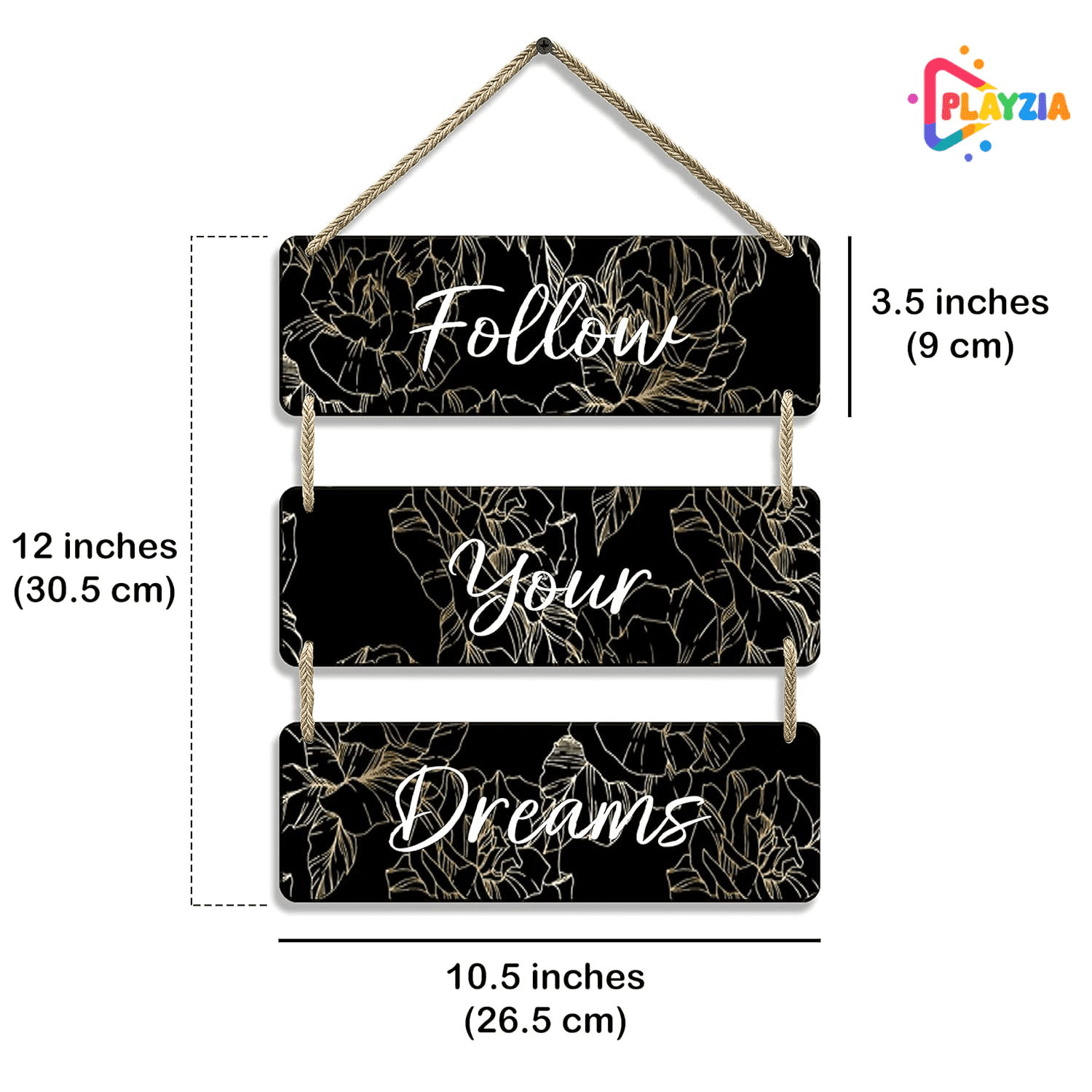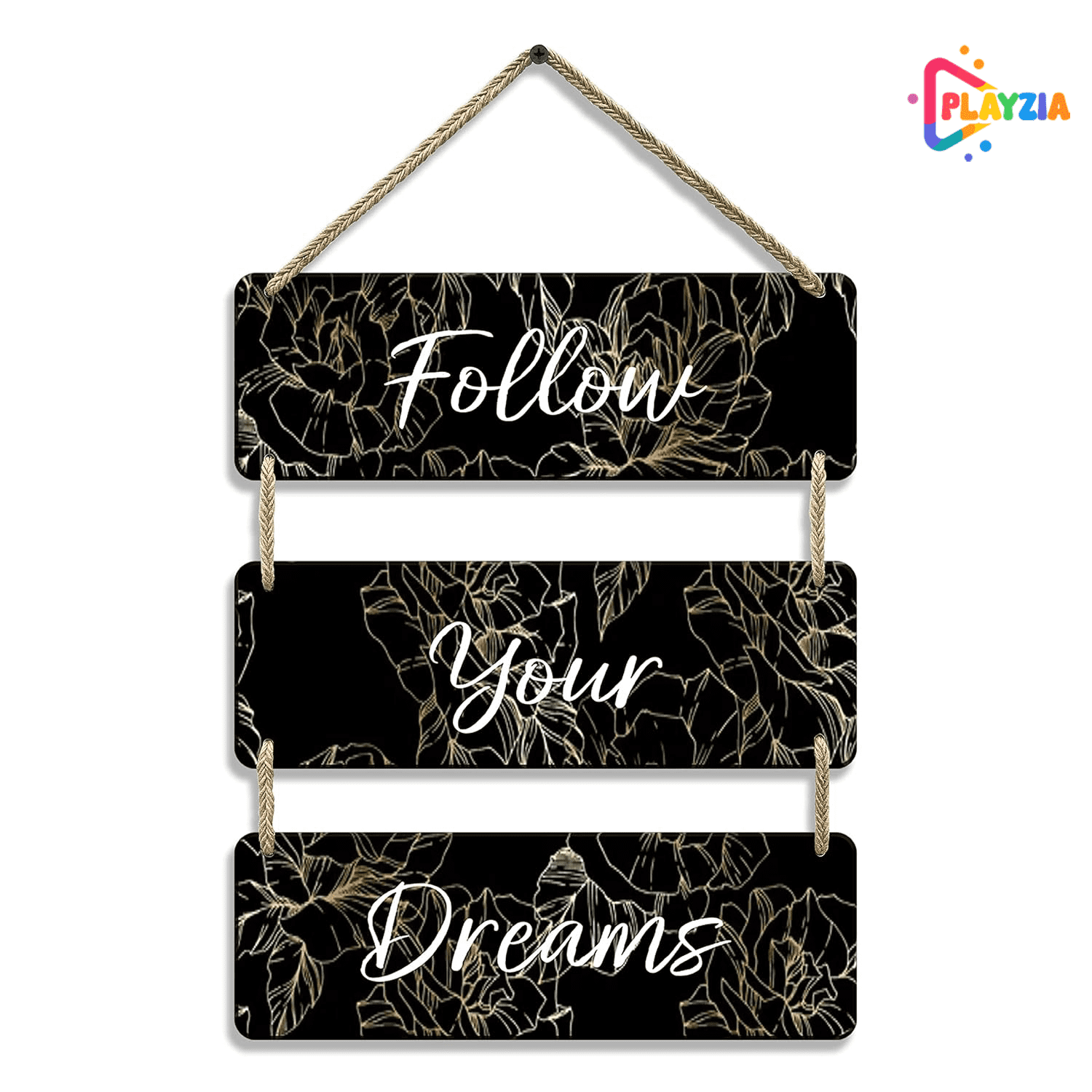 Playzia “Follow Your Dreams” Wooden Wall Hanging | Motivational Wall Décor for Living Room & Bedroom | Decorative Home & Office Wall Art | Inspirational Room Decoration Item