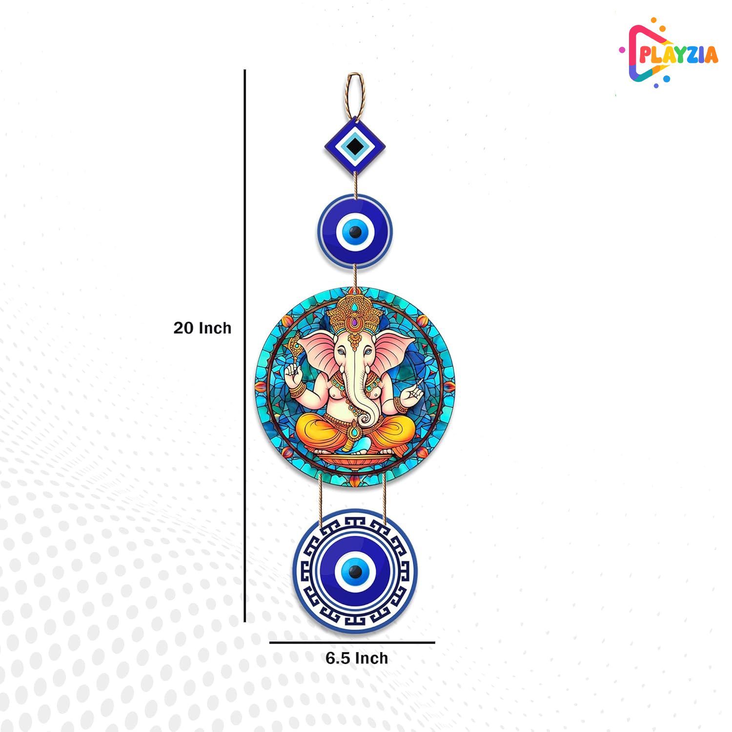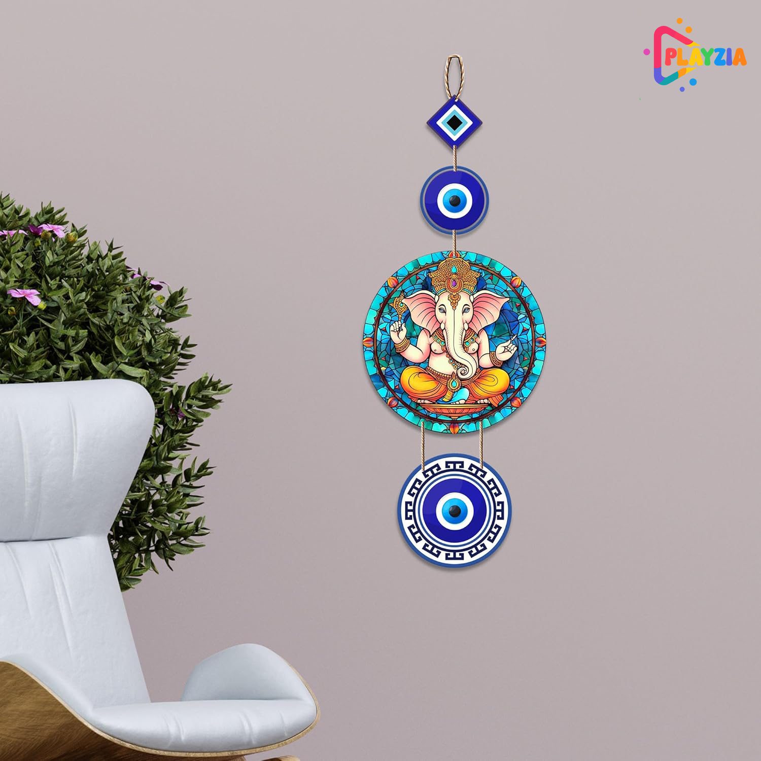 Playzia Ganesh Evil Eye Wooden Wall Hanging | Modern Decorative Artwork for Home & Living Room | Peace & Protection Wall Décor