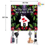 Add inspiration and organization to your space with the Playzia “God Does Not Create a Lock Without Its Key” Wooden Key Holder. Featuring an uplifting quote and 5 sturdy hooks, this elegant wall-mounted décor piece reminds you of hope and purpose while keeping your keys neatly arranged.