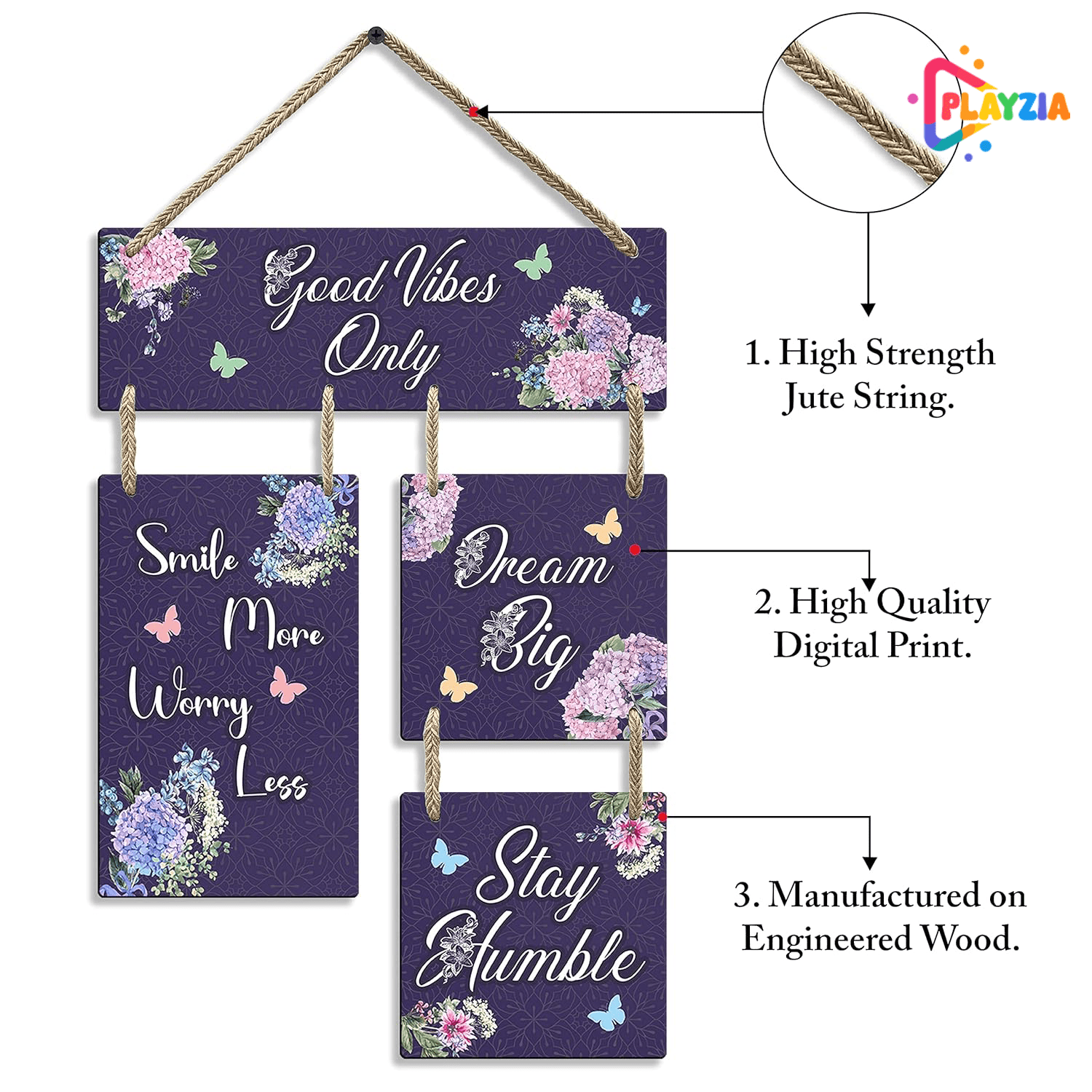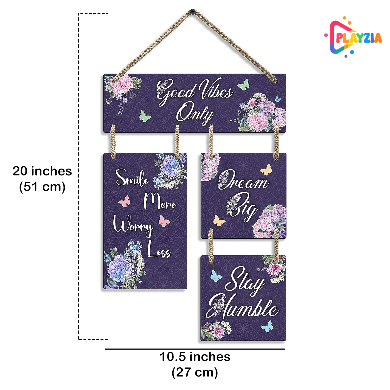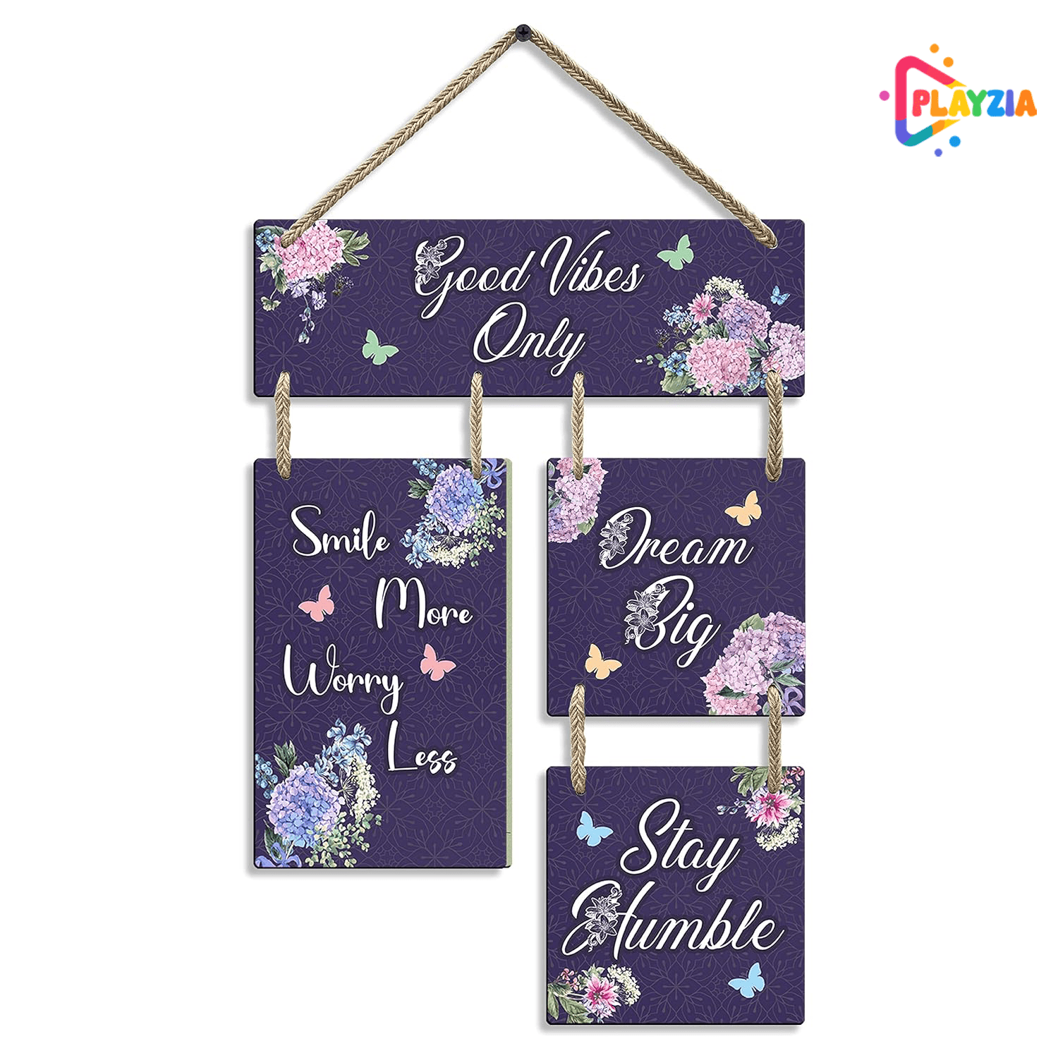 Enhance your space with uplifting energy using the Playzia “Good Vibes Only” Wooden Wall Hanging. Featuring elegant modern typography and a premium matte finish, this décor piece effortlessly complements living rooms, bedrooms, hallways, offices, and studios.
