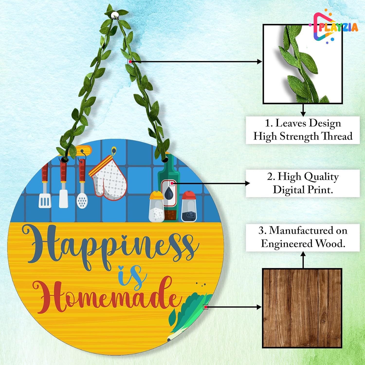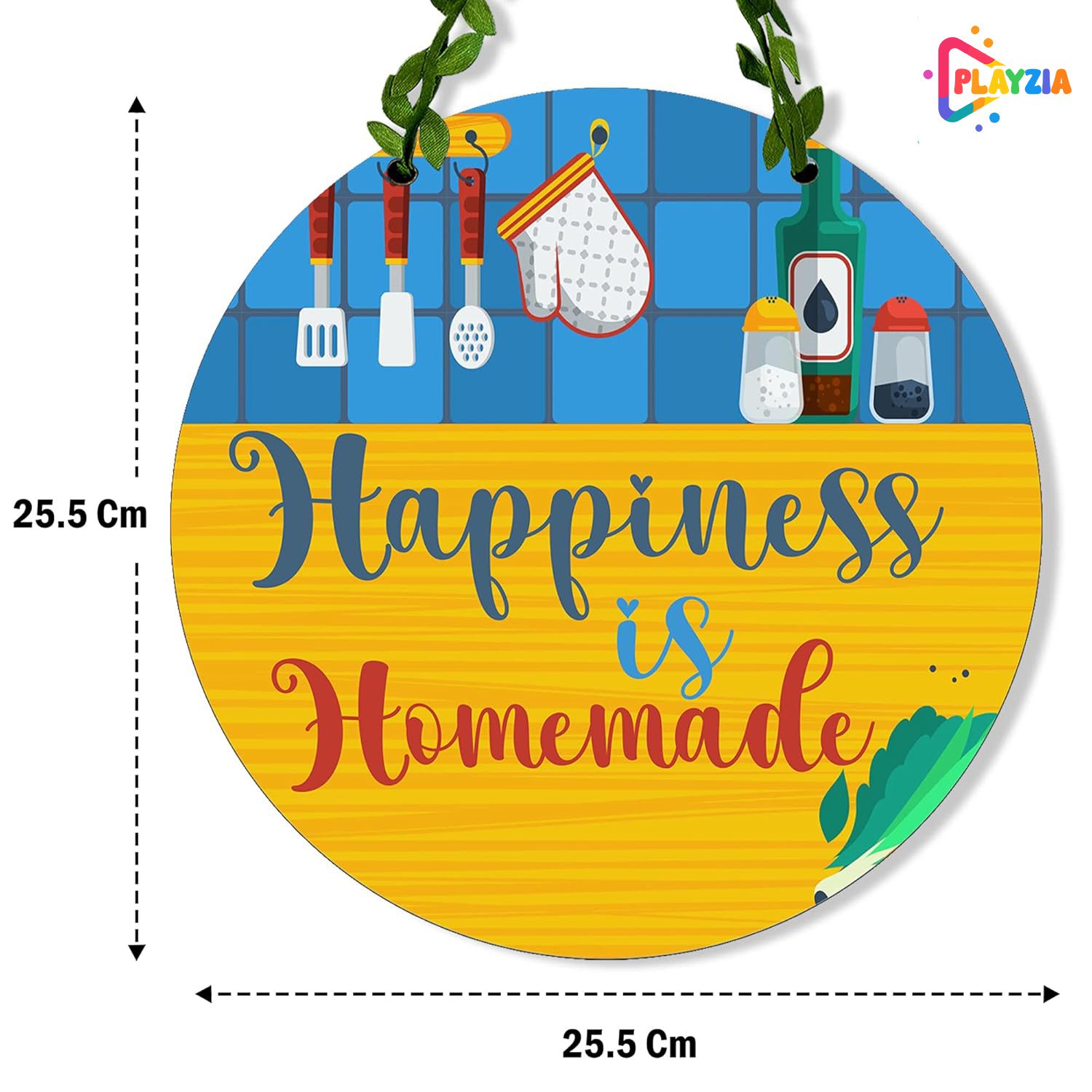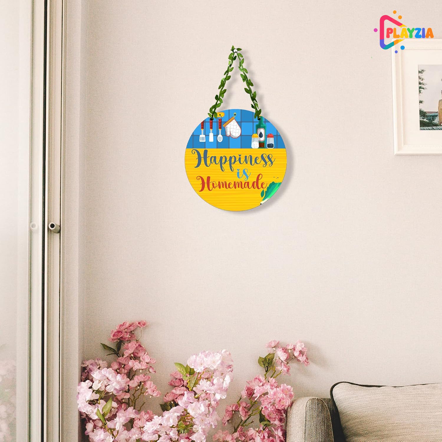 Playzia “Happiness is Homemade” Wall Hanging | Wooden Decorative Quote Wall Art | Welcome Door Hanging for Home Décor