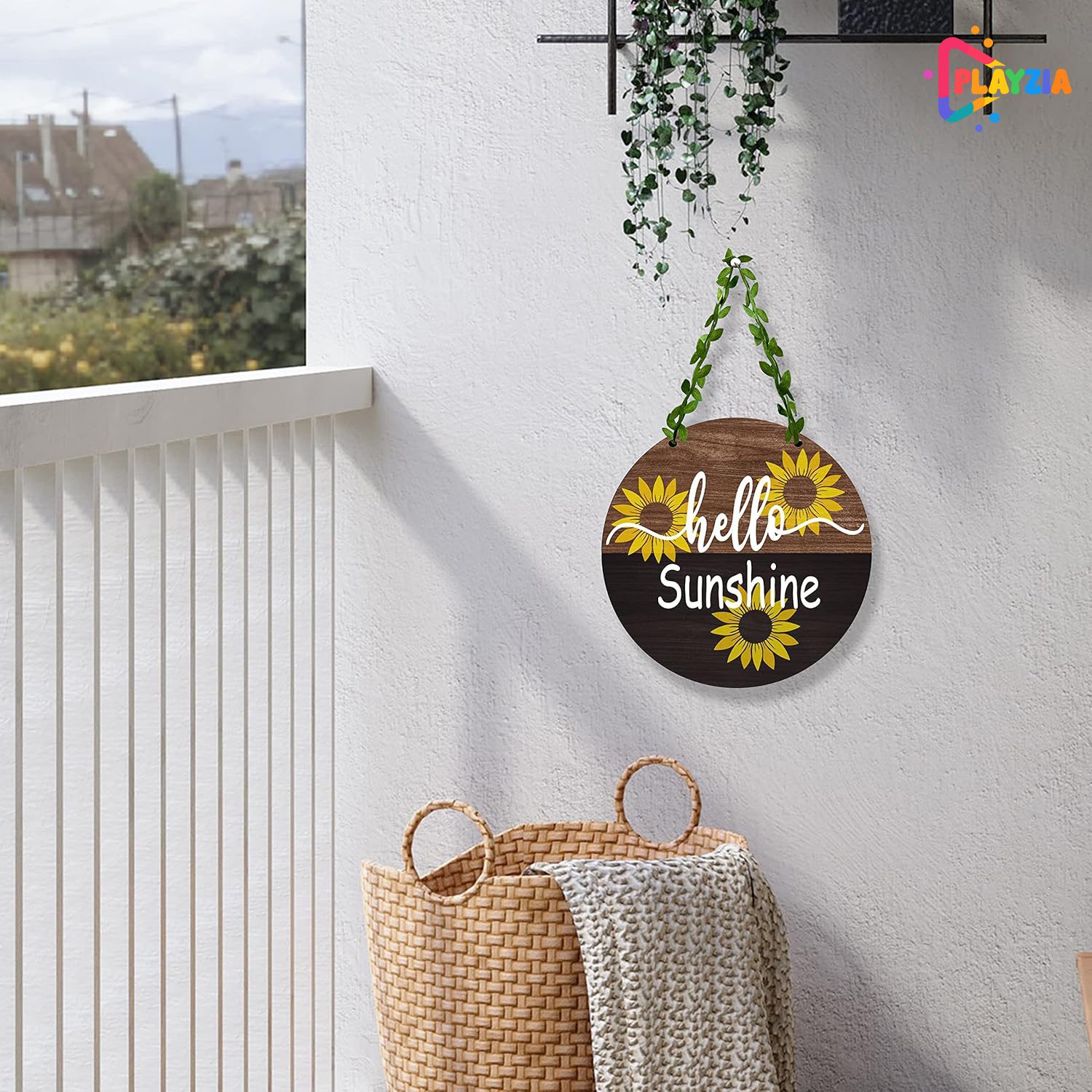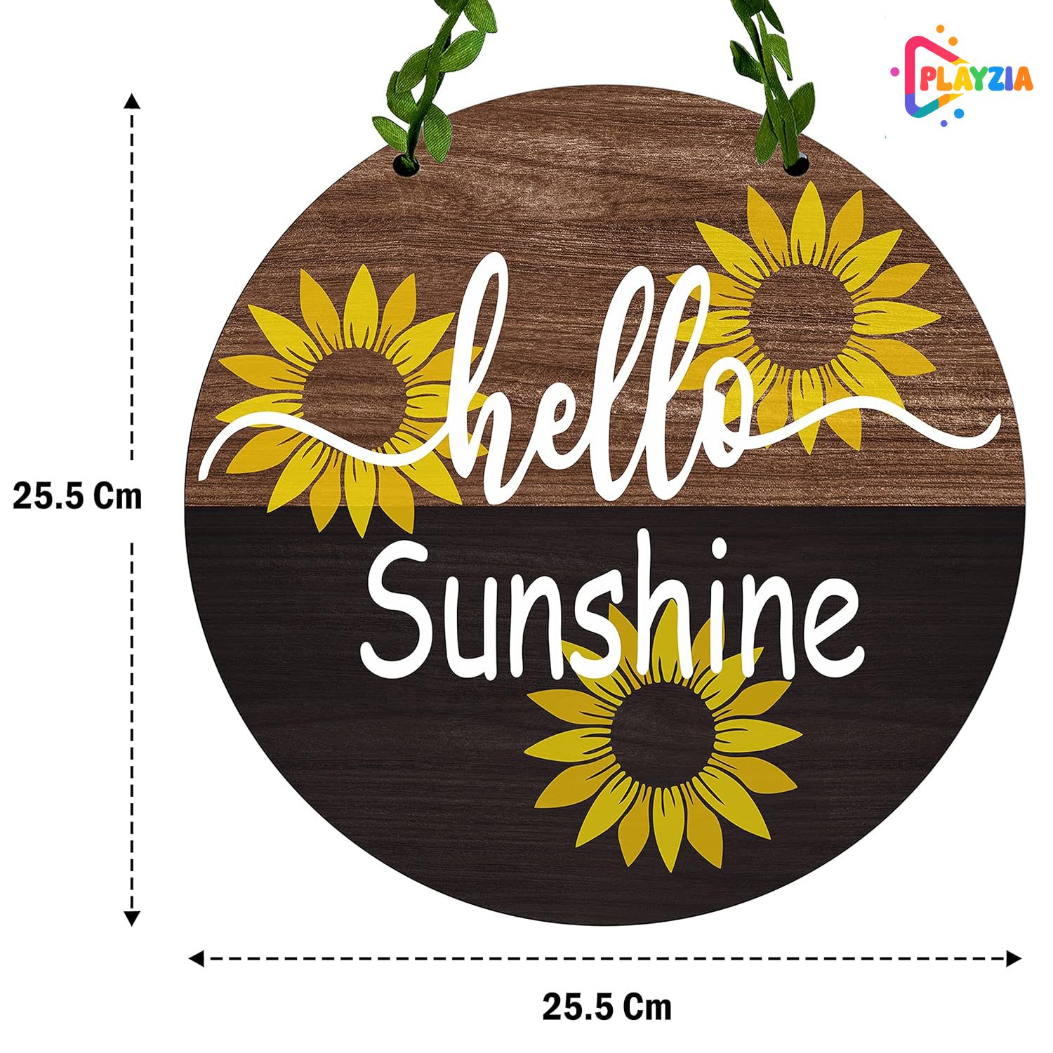 Playzia “Hello Sunshine” Wall Hanging | Wooden Decorative Quote Wall Art | Positive Welcome Door Hanging for Home Décor