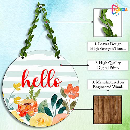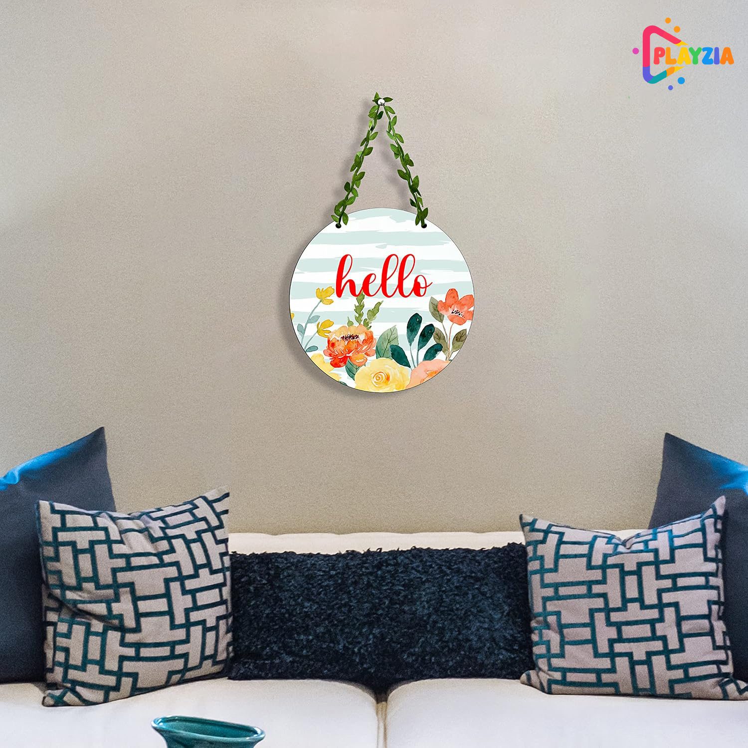 Playzia “Hello” Wall Hanging | Wooden Welcome Home Decorative Wall Art | Modern Door Hanging for Entrance Décor