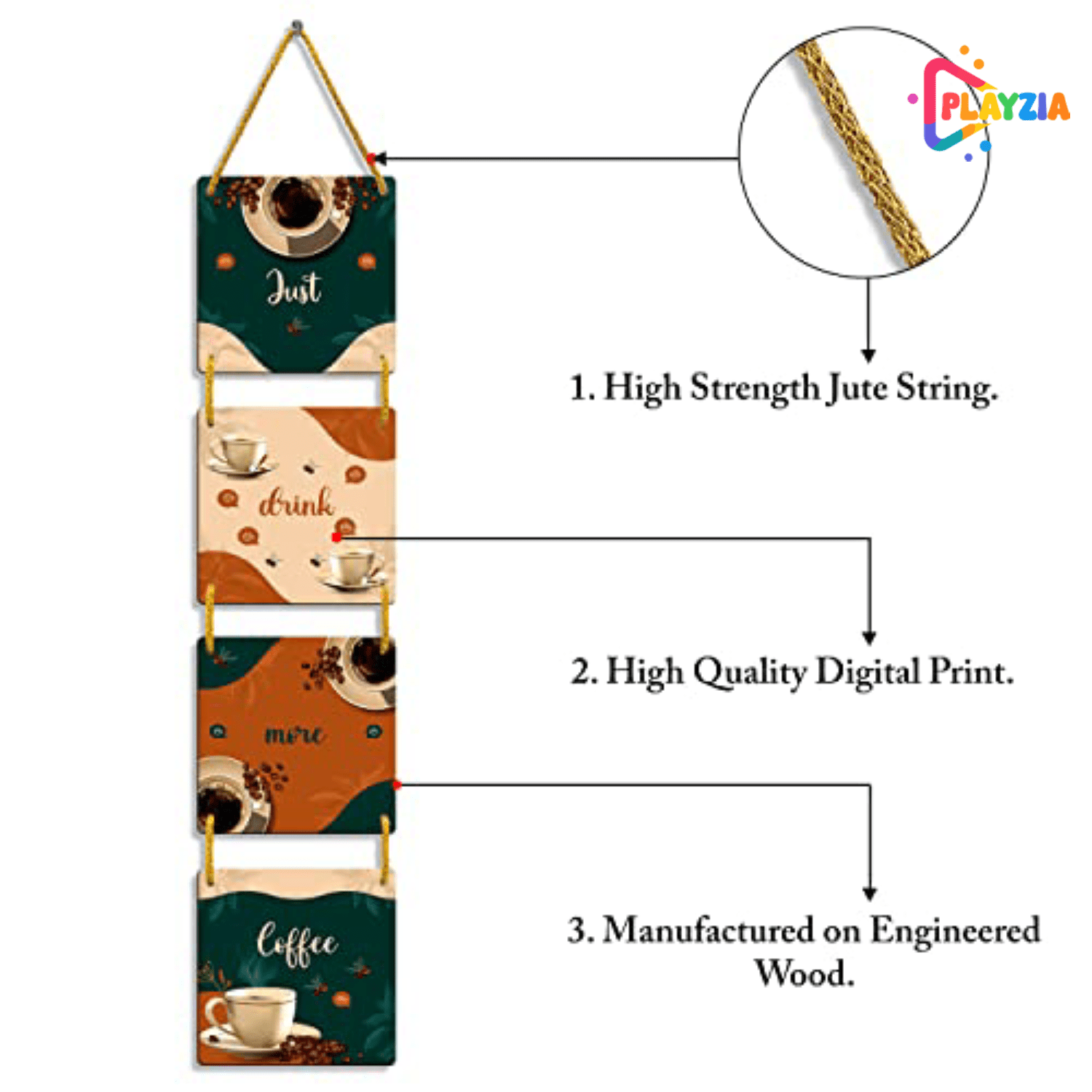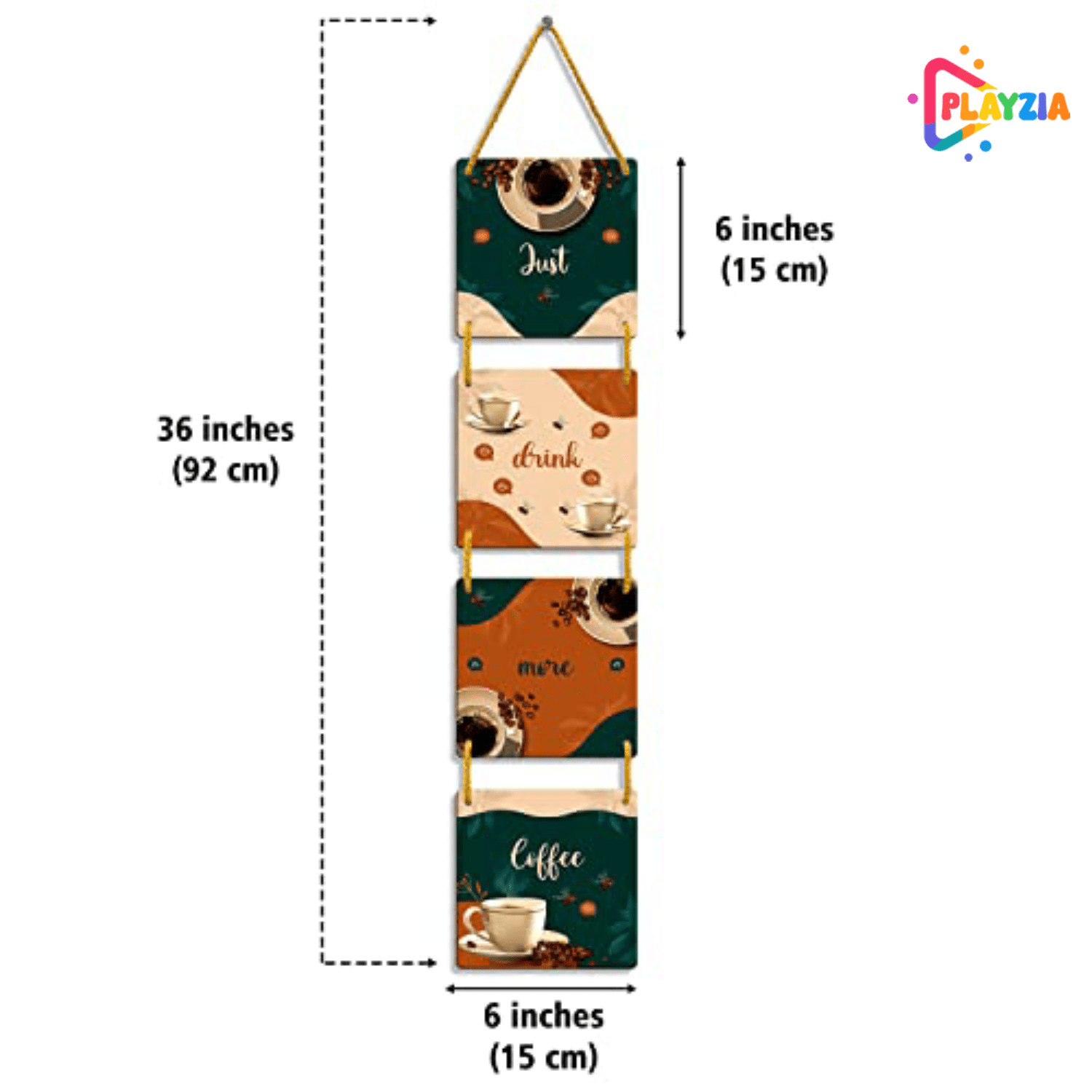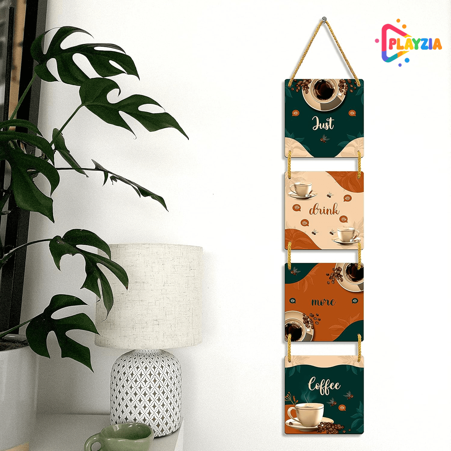 Add a fun, cozy vibe to your home with the Playzia “Just Drink More Coffee” 4-Square Multilayer Wooden Wall Hanging. Crafted from layered MDF with a matte finish, this stylish set is perfect for living rooms, bedrooms, kitchens, offices, cafés, and modern interiors.
