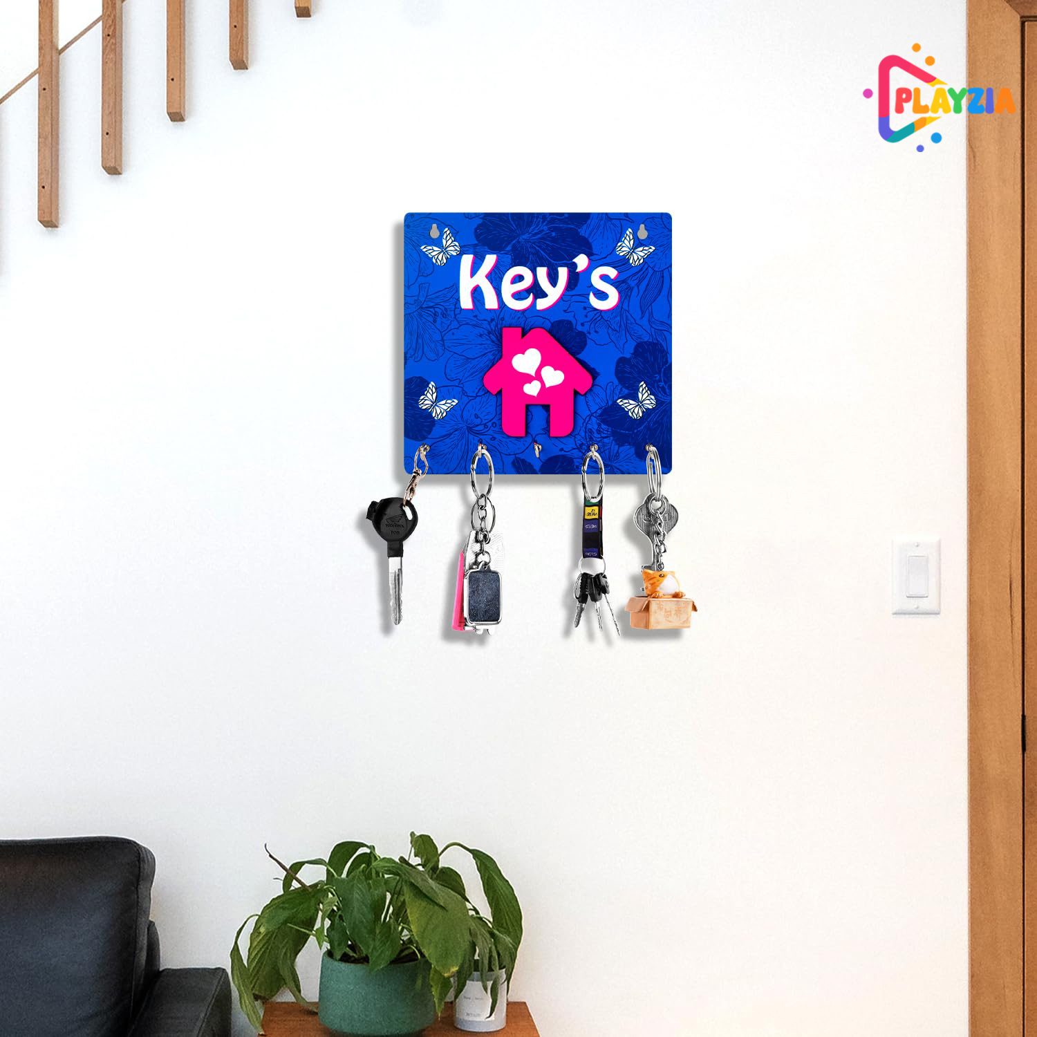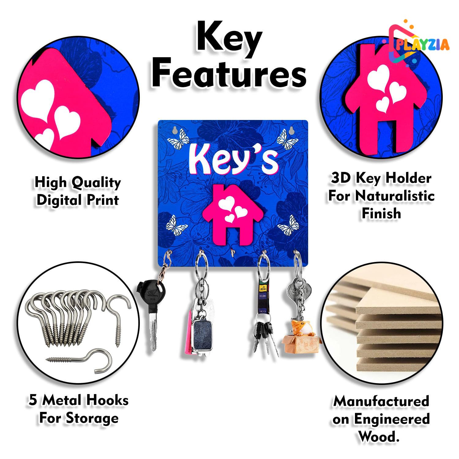 Keep your essentials organized in style with the Playzia “Key’s” Wooden Key Holder. Designed with a simple yet elegant printed artwork and equipped with 5 durable hooks, this wall-mounted key hanger is perfect for adding functionality and a touch of modern charm to your home décor.