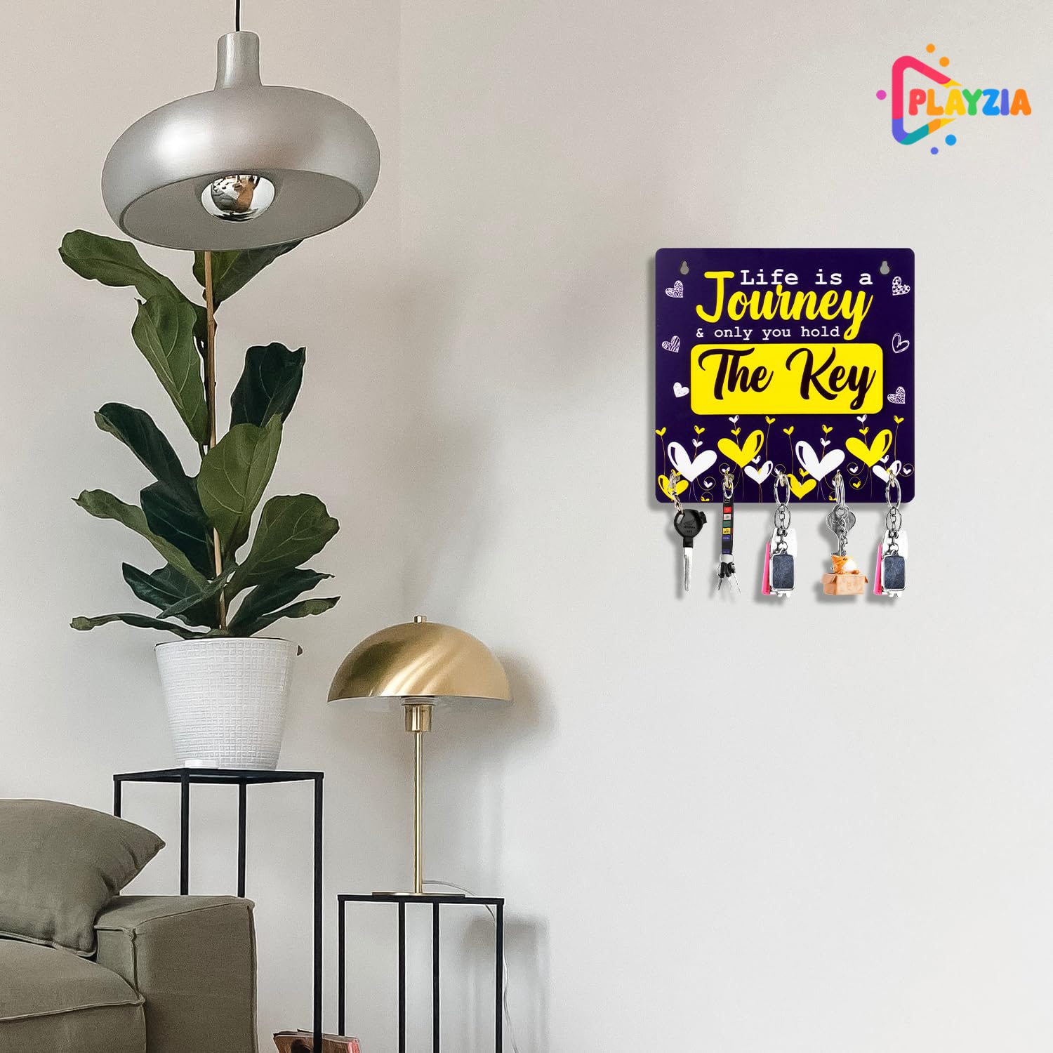 Keep your essentials organized in style with the Playzia “Life is a Journey” Wooden Key Holder. Featuring an inspiring quote and 5 sturdy hooks, this artistic wall-mounted piece adds a motivational and functional touch to your home or office décor.