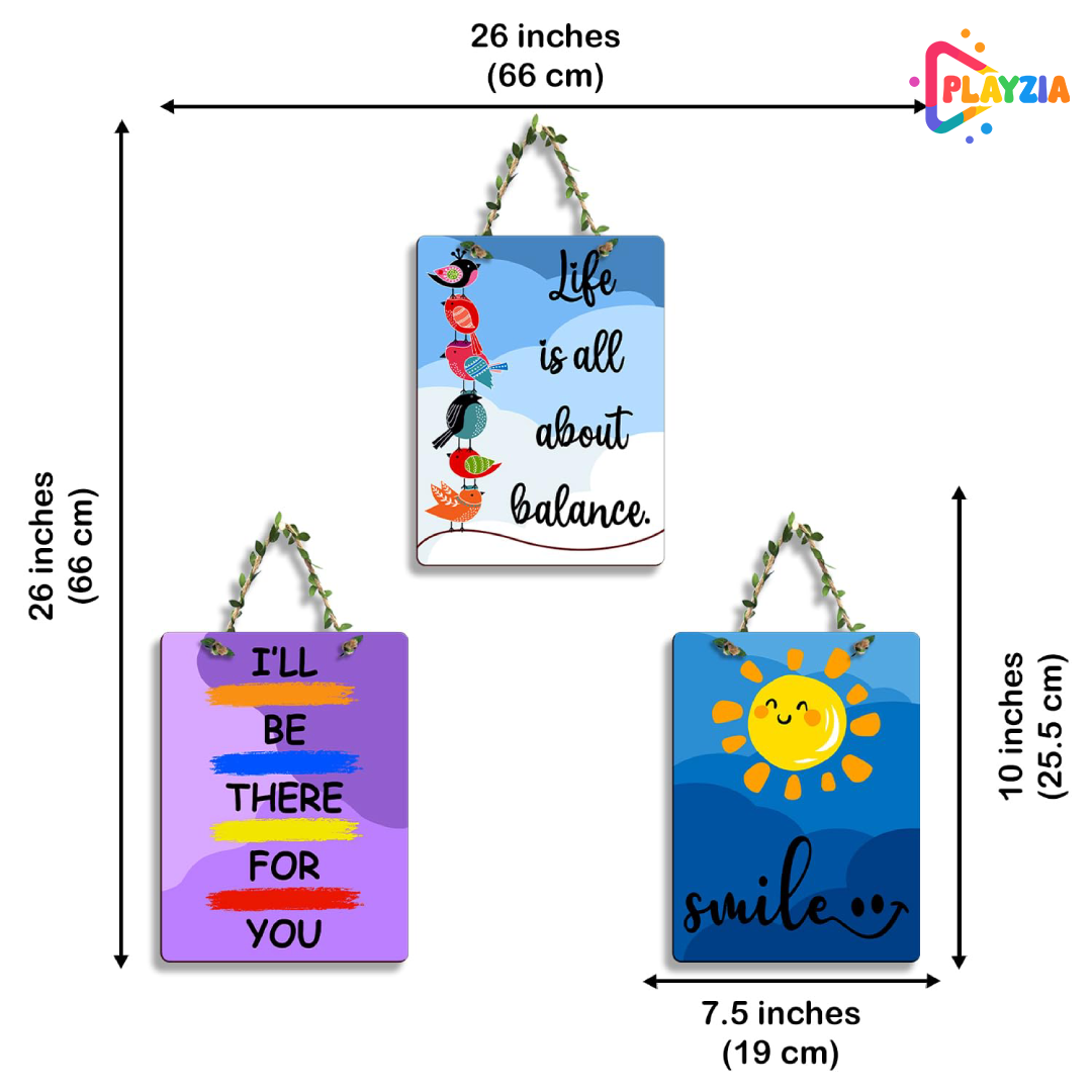 Playzia “Life Is All About Balance” Wooden Wall Hanging | 3-Piece Positive Quote Wall Art for Living Room & Office | Modern Home Decor Panels | Hall, Café & Restaurant Decoration Item (66 × 22.5 × 66 cm)