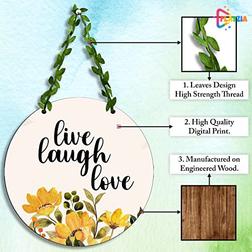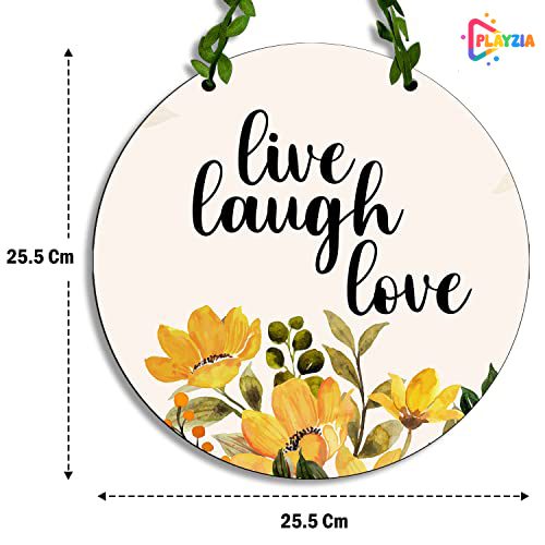 Playzia “Live Laugh Love” Wall Hanging | Wooden Welcome Home Decorative Wall Art | Motivational Door Hanging for Home Décor