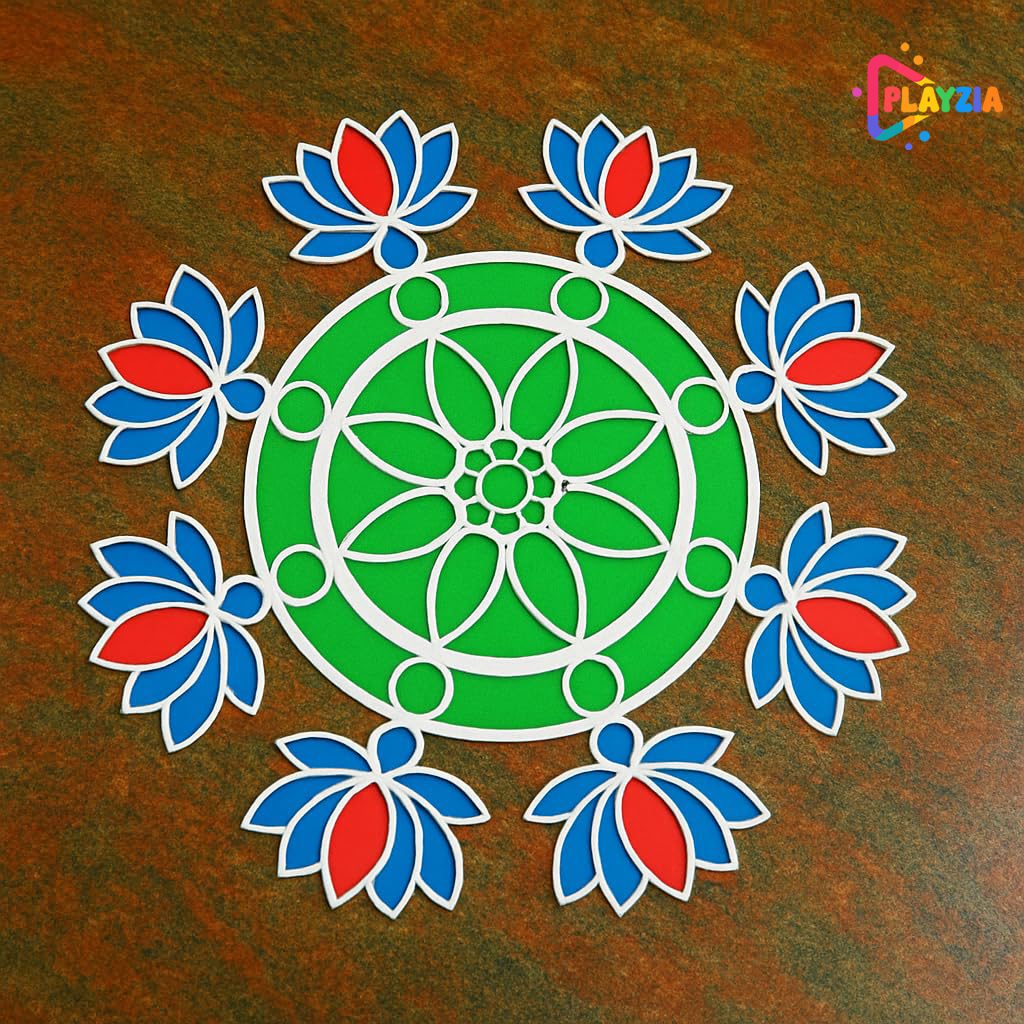 Playzia Rangoli Design for Diwali Decoration | Lotus Design Rangoli Stencil | Decorative Diwali Festival Item for Home, Office, Living Room & Hall (11.3 Inch)