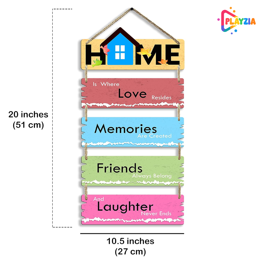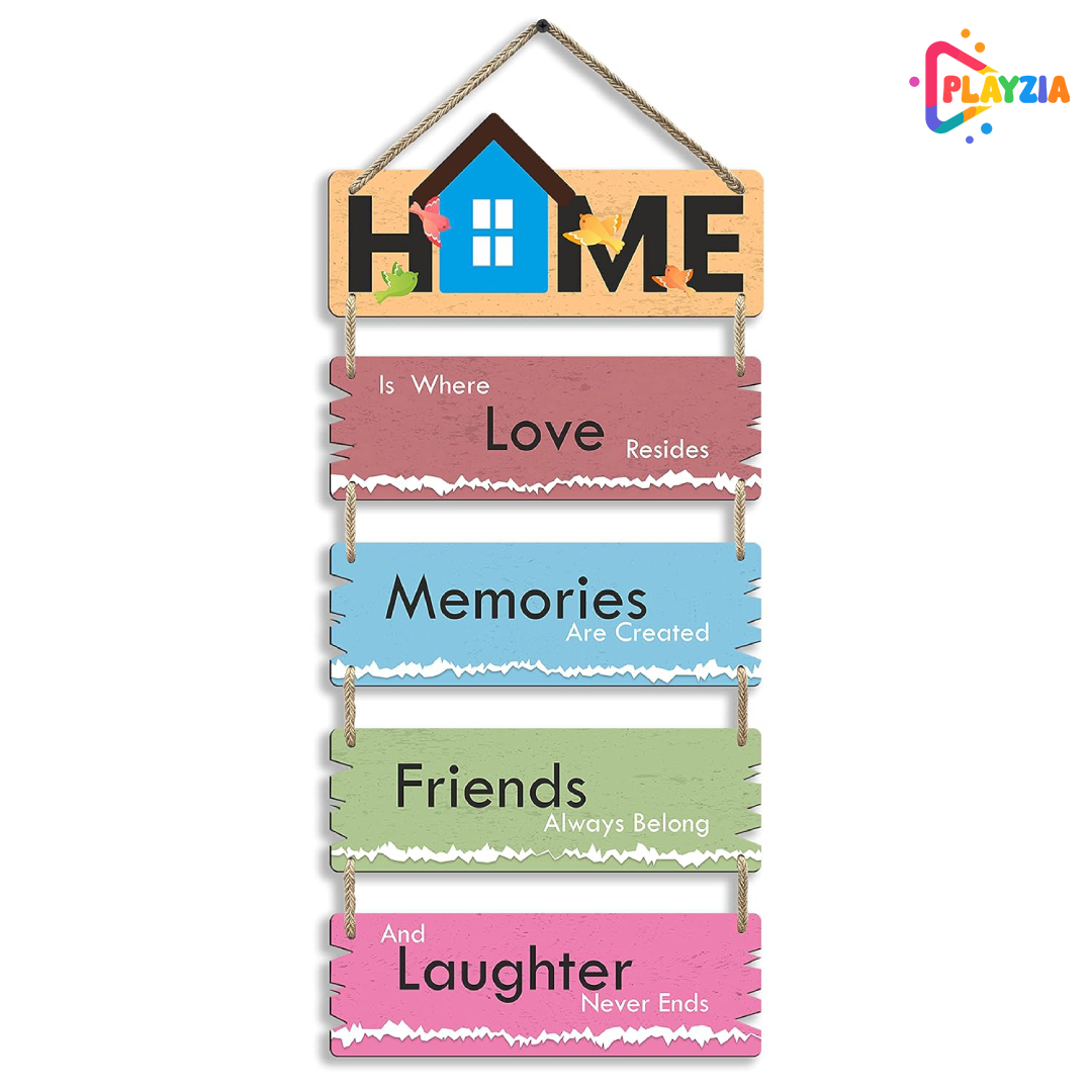 Playzia “Love Memories Friends Laughter” Decorative Wall Art | MDF Wooden Wall Hanging for Bedroom & Living Room | Positive Quote Home Decor | Modern Layered Wall Décor | Gift for Home & Office (51 × 27 cm)