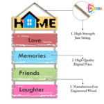 Celebrate the moments that make a house feel like home with the Playzia “Love Memories Friends Laughter” 5-layer wooden wall décor. Crafted in a richly layered design, this modern inspirational wall art adds warmth and charm to bedrooms, living rooms, hallways, workspaces, and gifting occasions.