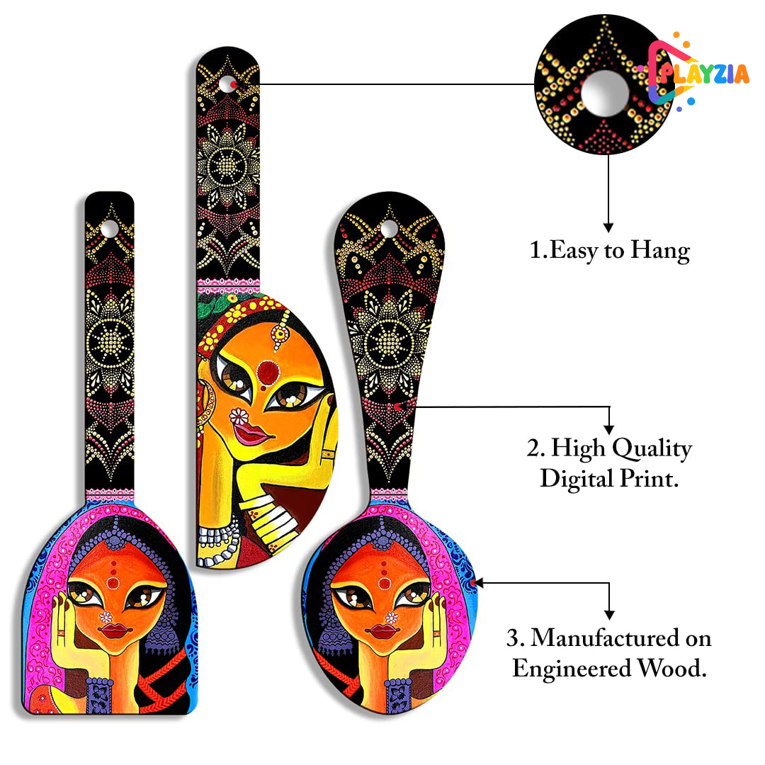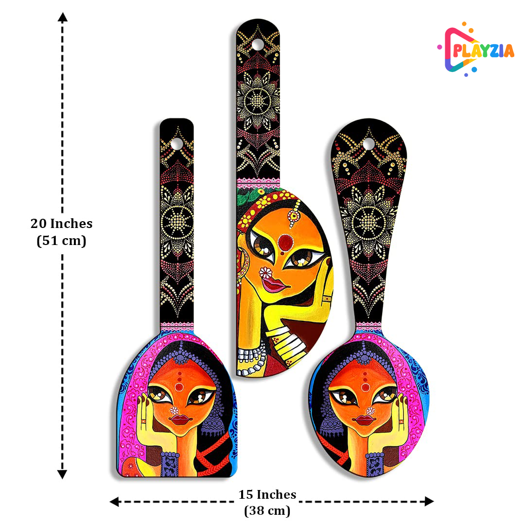 Playzia “Madhubani Art Spoon Set” Wooden Wall Hangings | Traditional Indian Folk Decorative Wall Art for Living Room & Bedroom | Artistic Wall Decoration Panels | Set of 3 (51 × 38 cm)