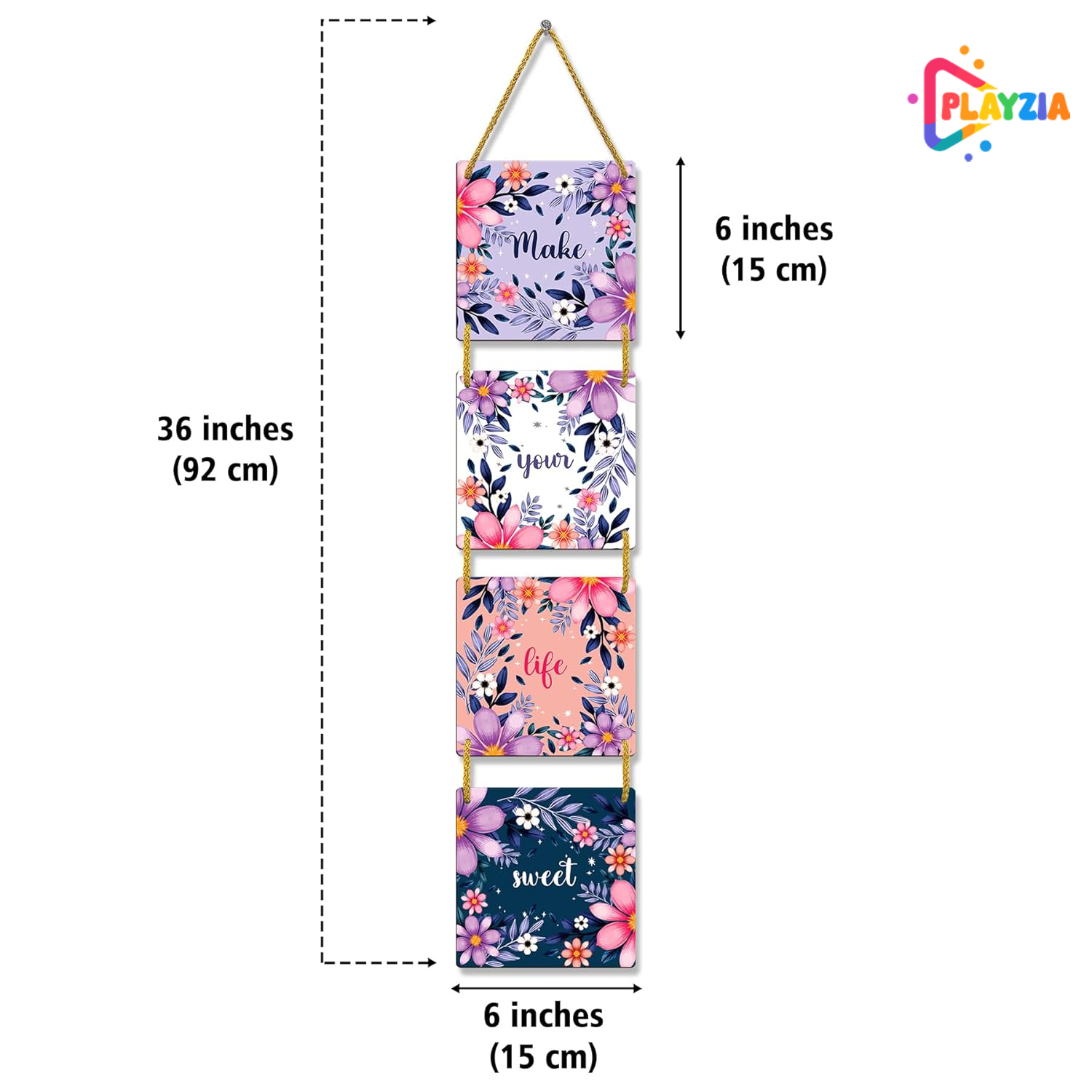 Playzia “Make Your Life Sweet” Multilayer Wooden Wall Hanging | 4-Piece Square Panel Wall Décor for Living Room & Bedroom | Stylish Modern Home Decoration Art Frames