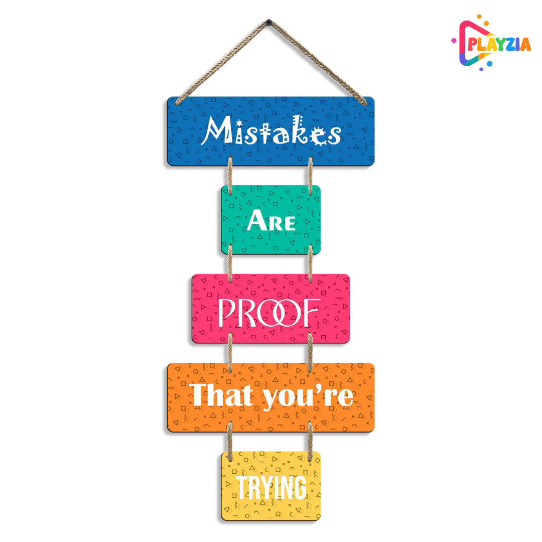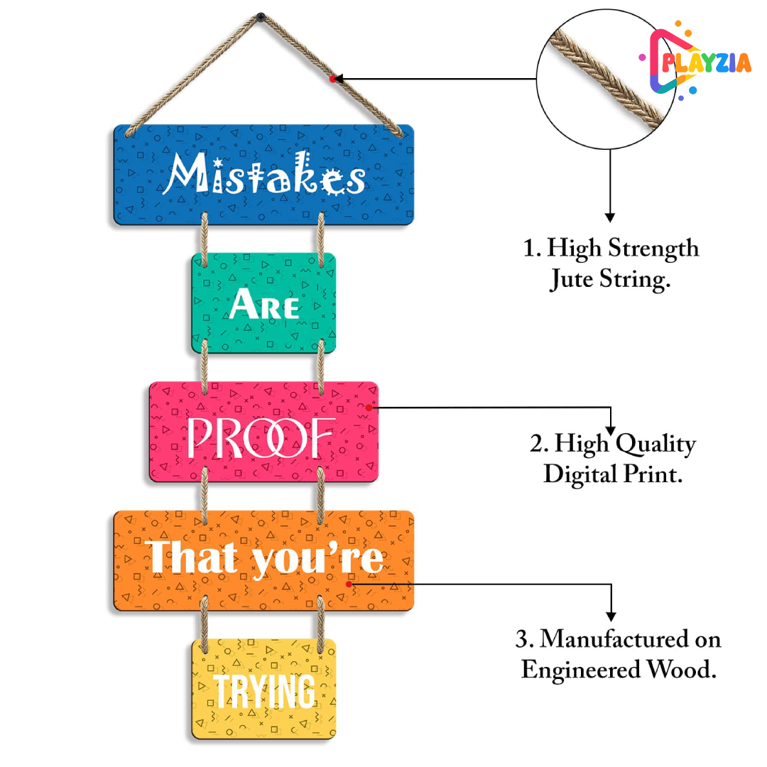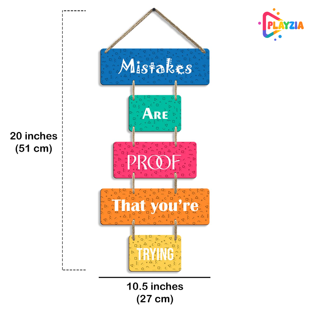 Playzia “Mistakes Are Proof That You Are Trying” Decorative Wall Art | MDF Wooden Wall Hanging for Bedroom, Living Room & Office | Inspirational Quote Home Décor | Multi-Layer Modern Wall Hanging | Gift for Students & Professionals (51 × 27 cm)