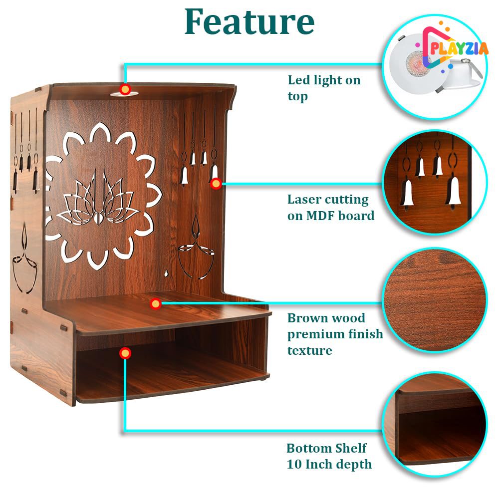 Playzia Modern Ganesh Pooja Mandir | Big Wooden Temple & Puja Stand for Home