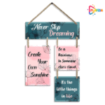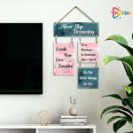 Bring warmth, positivity, and inspiration to your space with the Playzia “Never Stop Dreaming” Wooden Wall Hanging. Designed with stylish typography and a premium matte finish, it is ideal for bedrooms, living rooms, offices, study areas, and modern interiors.