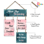Playzia “Never Stop Dreaming” Wooden Wall Hanging | Positive Quote Wall Art for Living Room & Bedroom | Decorative Items for Home | Modern Motivational Wall Decor
