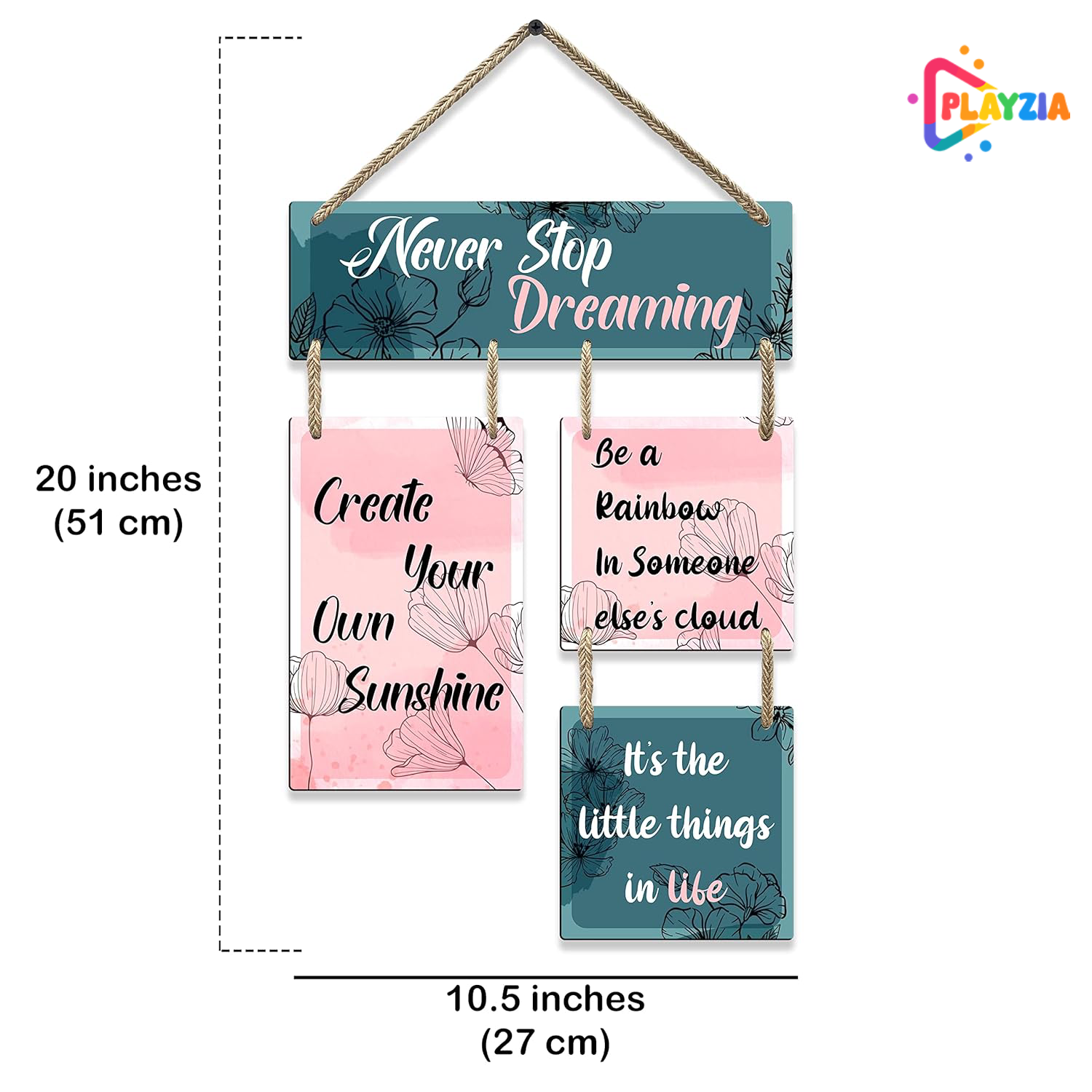Playzia “Never Stop Dreaming” Wooden Wall Hanging | Positive Quote Wall Art for Living Room & Bedroom | Decorative Items for Home | Modern Motivational Wall Decor