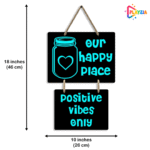 Playzia “Our Happy Place” Wooden Wall Hanging | Wall Decoration Items for Living Room | Decorative Wall Plates for Home | Positive Home Décor Wall Hangings – Set of 2 (46 × 26 cm)