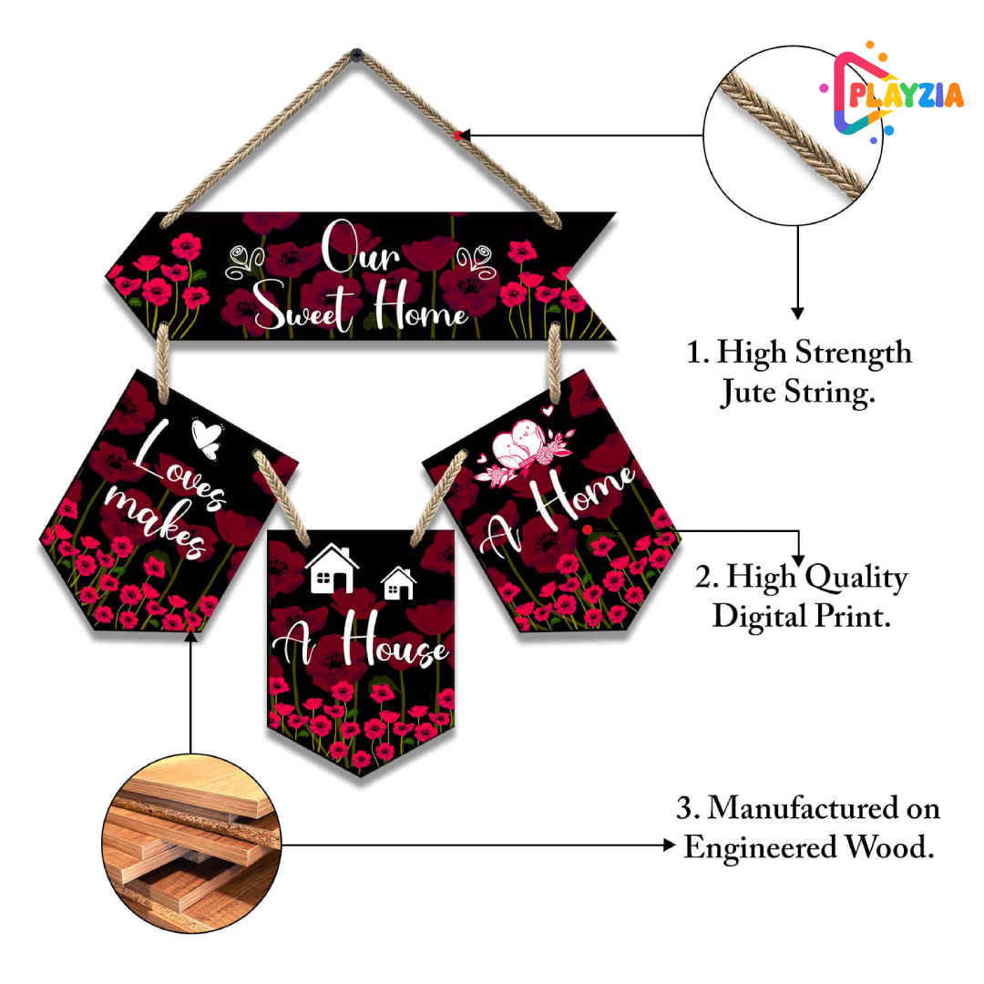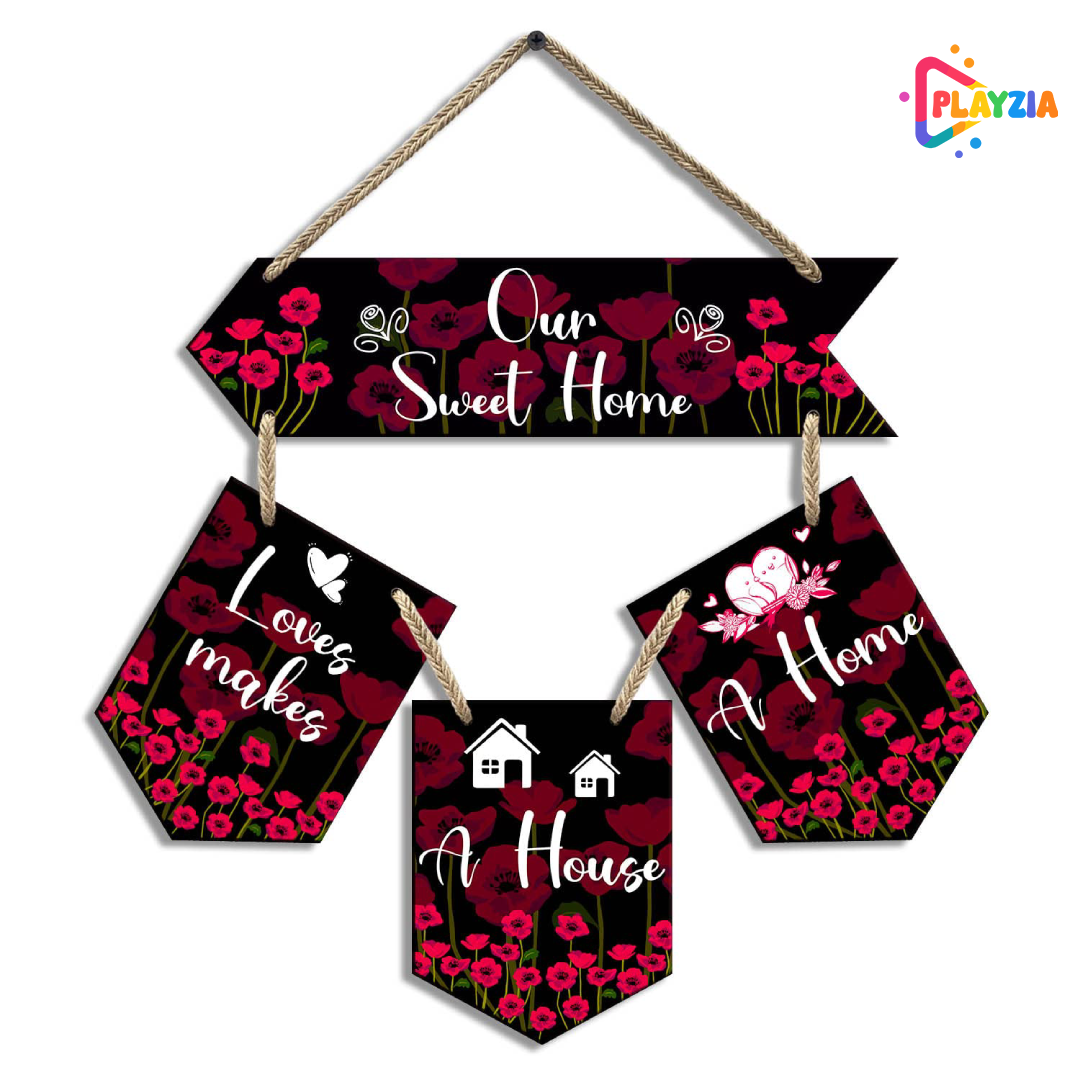 Playzia “Our Sweet Home” Home Quote Wall Hanging | Decorative Wooden Wall Art for Living Room & Bedroom | Modern Home Décor Item | Stylish Wall Decoration (46 × 40 cm)