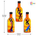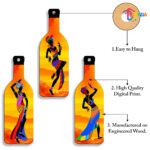 Playzia “African Dancing Girl” 3-Bottle Wall Hanging | Ethnic Art Wooden Wall Décor | Stylish Living Room & Bedroom Wall Hanging
