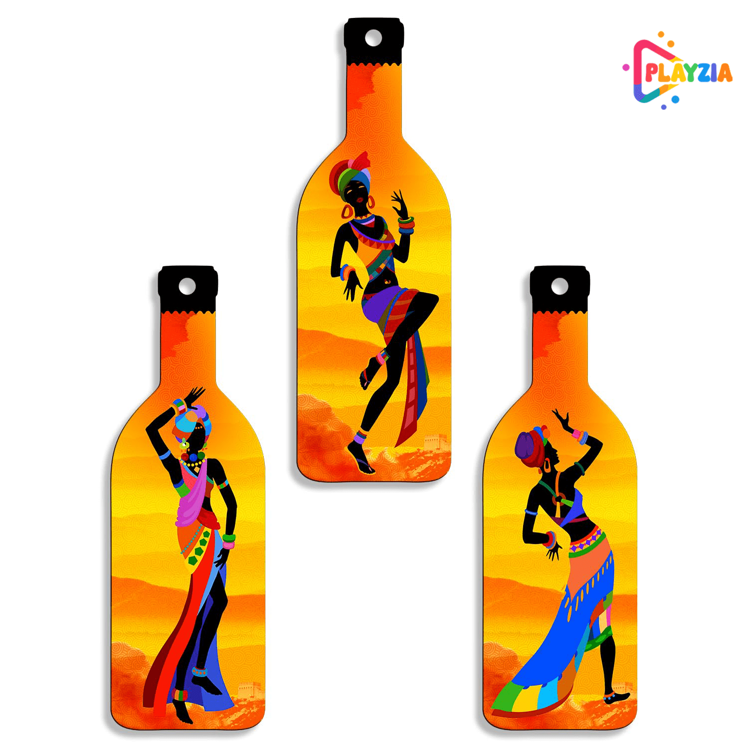 Celebrate art and culture with the Playzia “African Dancing Girl” 3-Bottle Wall Hanging. Featuring a beautiful ethnic design, this artistic décor piece adds movement, elegance, and warmth to your space — perfect for modern homes, studios, and creative interiors.