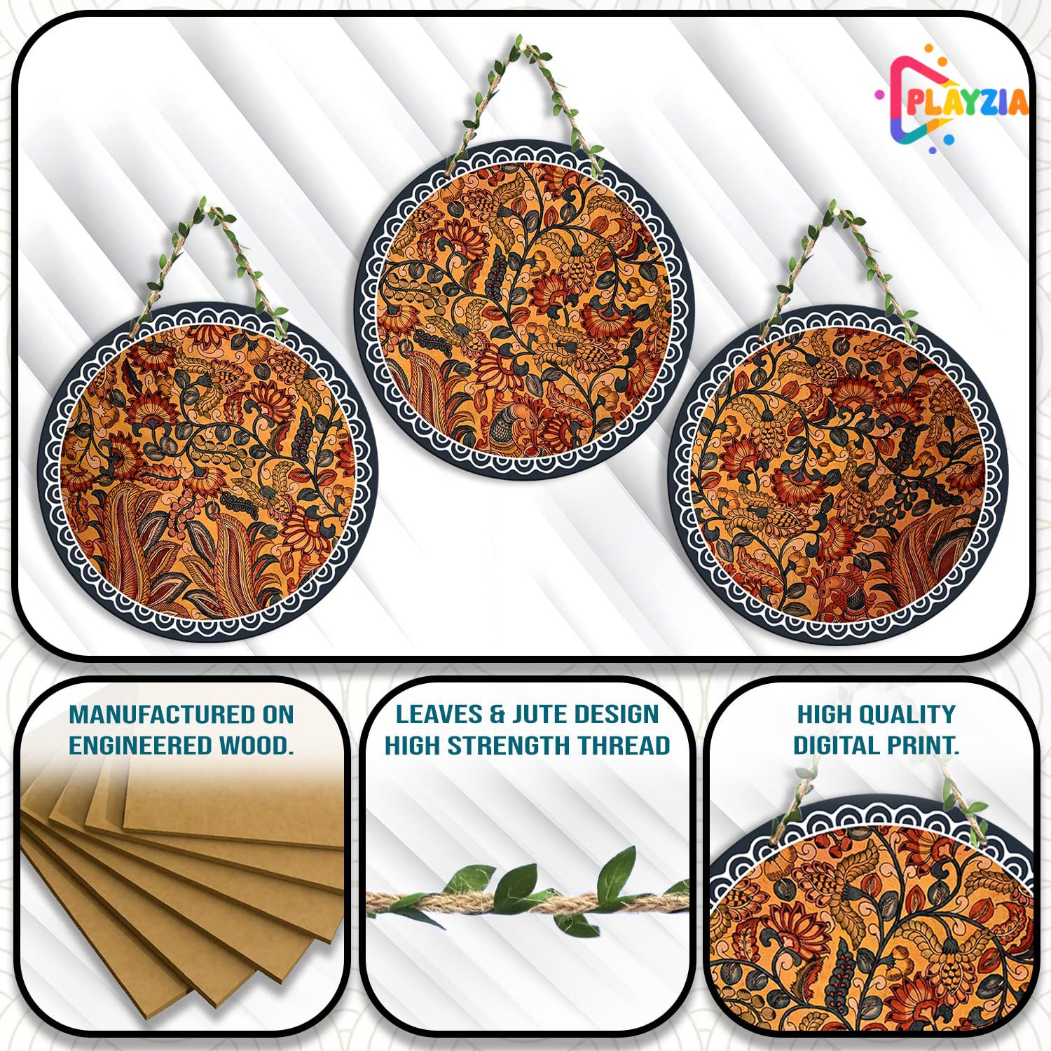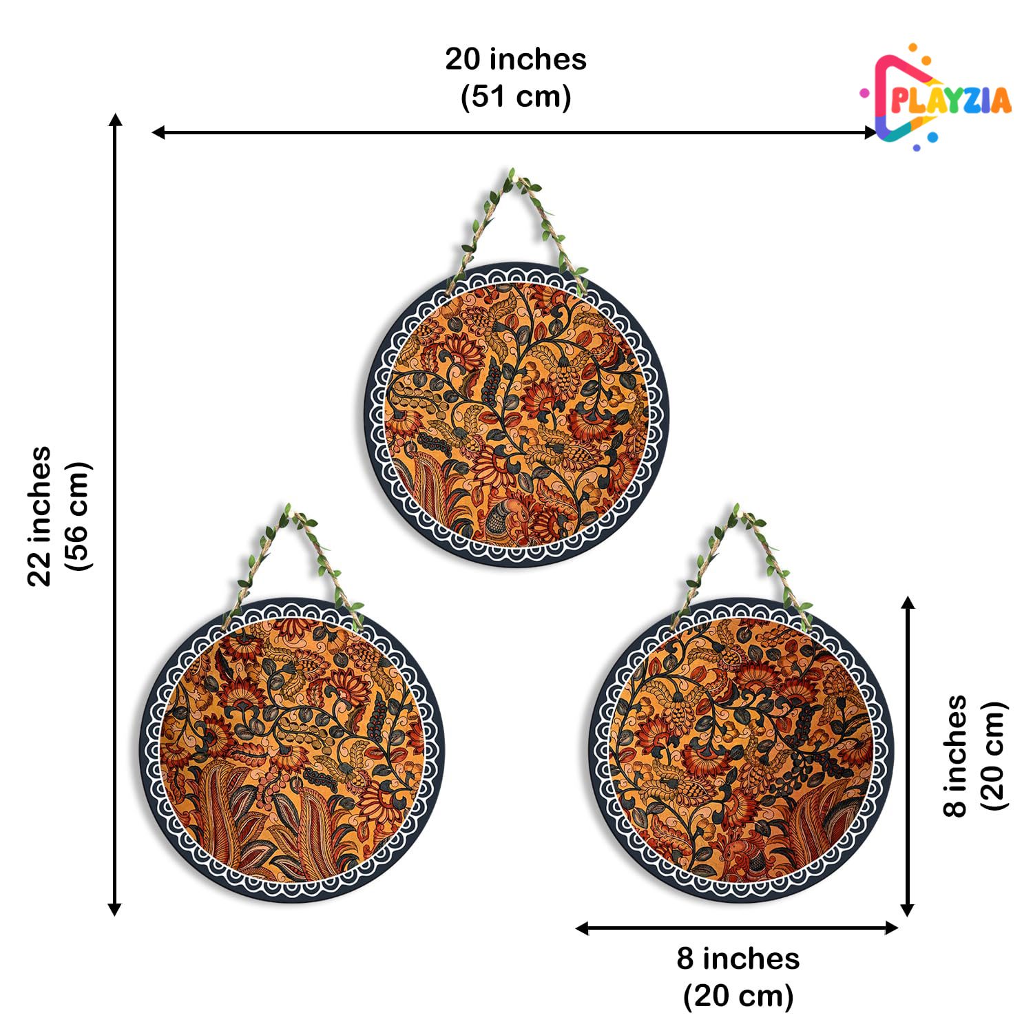 Playzia 3 Circle Set Wall Hanging | Wooden Wall Art for Home DƩcor & Living Room Decoration