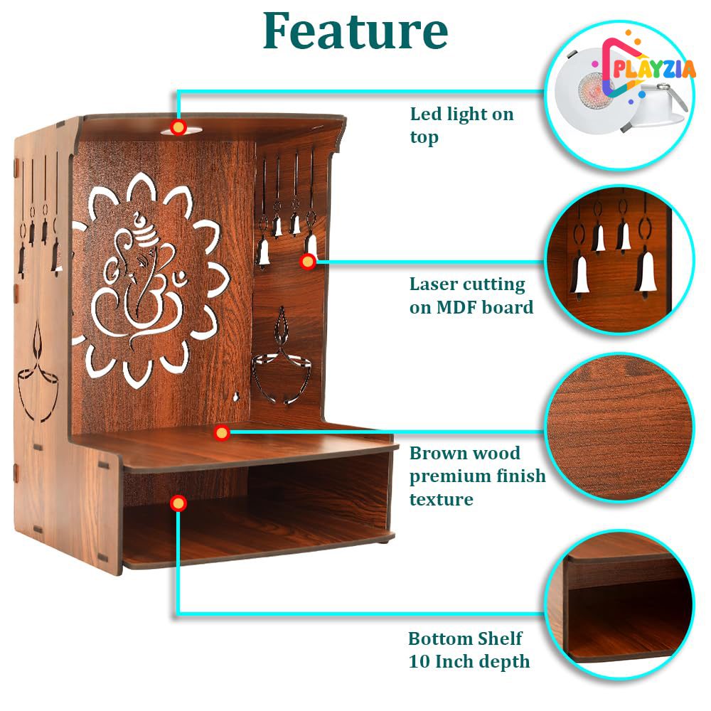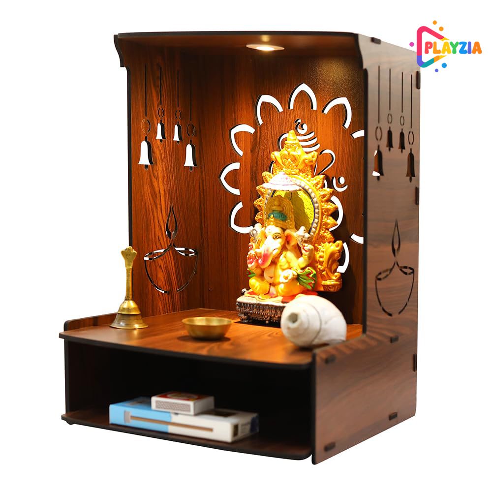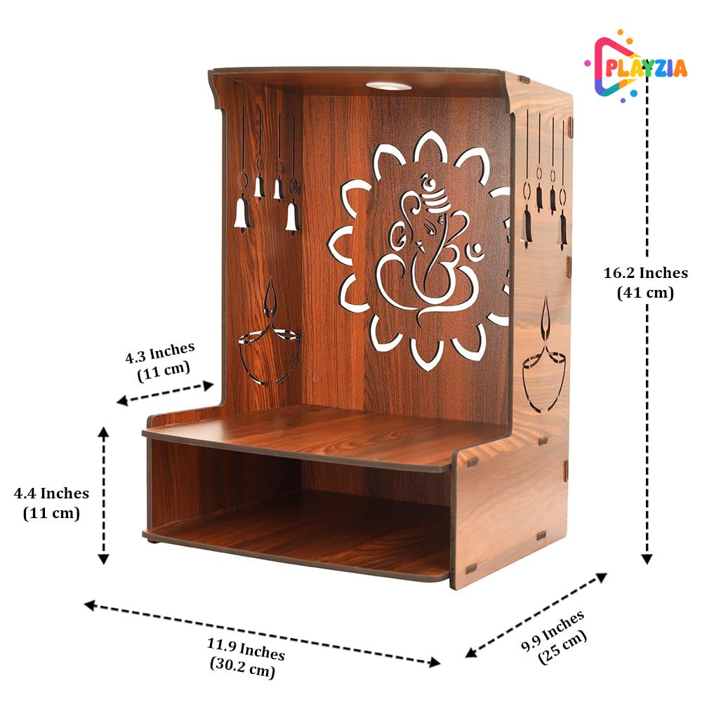 Playzia Wooden Pooja Mandir for Home Big Size | Wall Mounted Temple | Wooden Pooja Stand for Home Décor