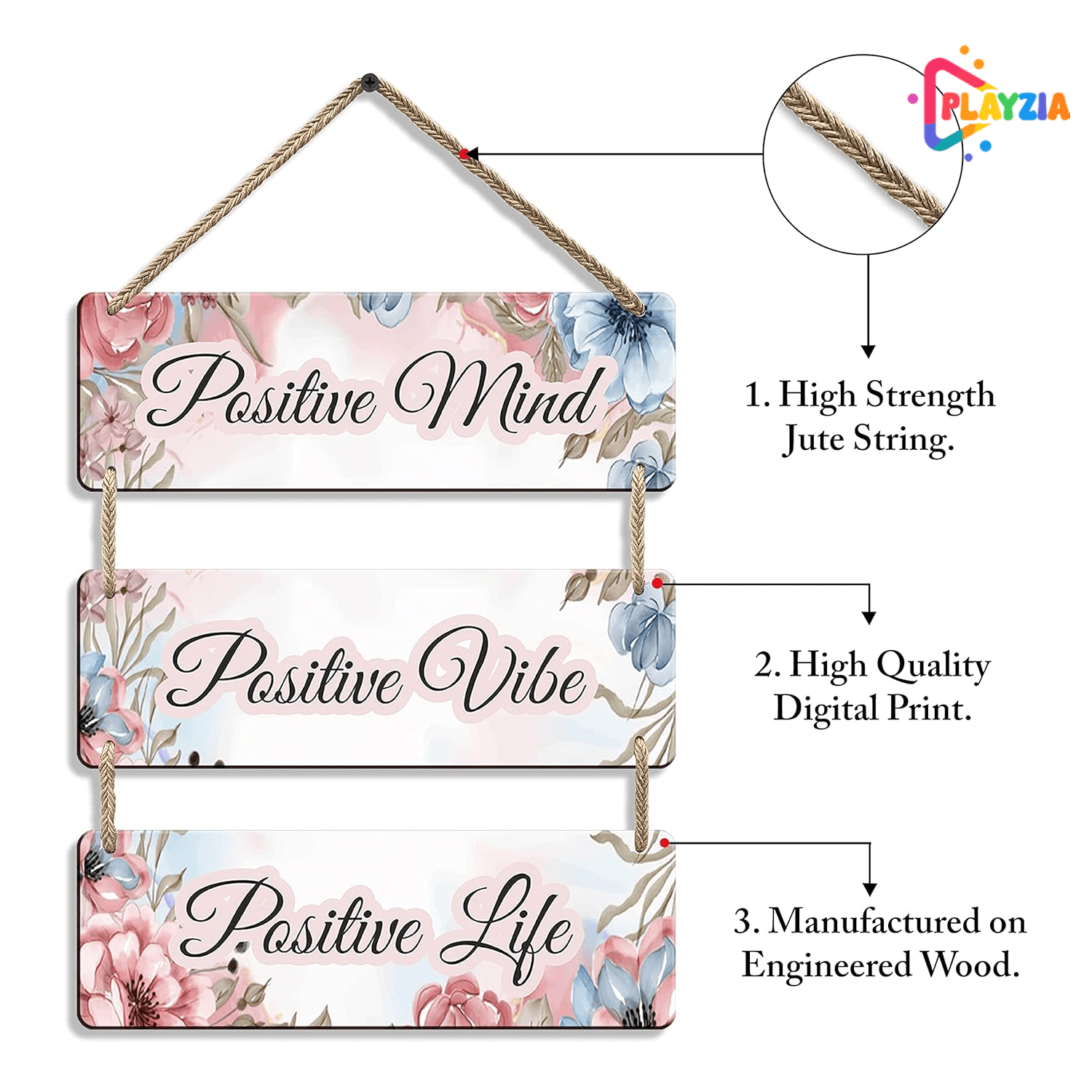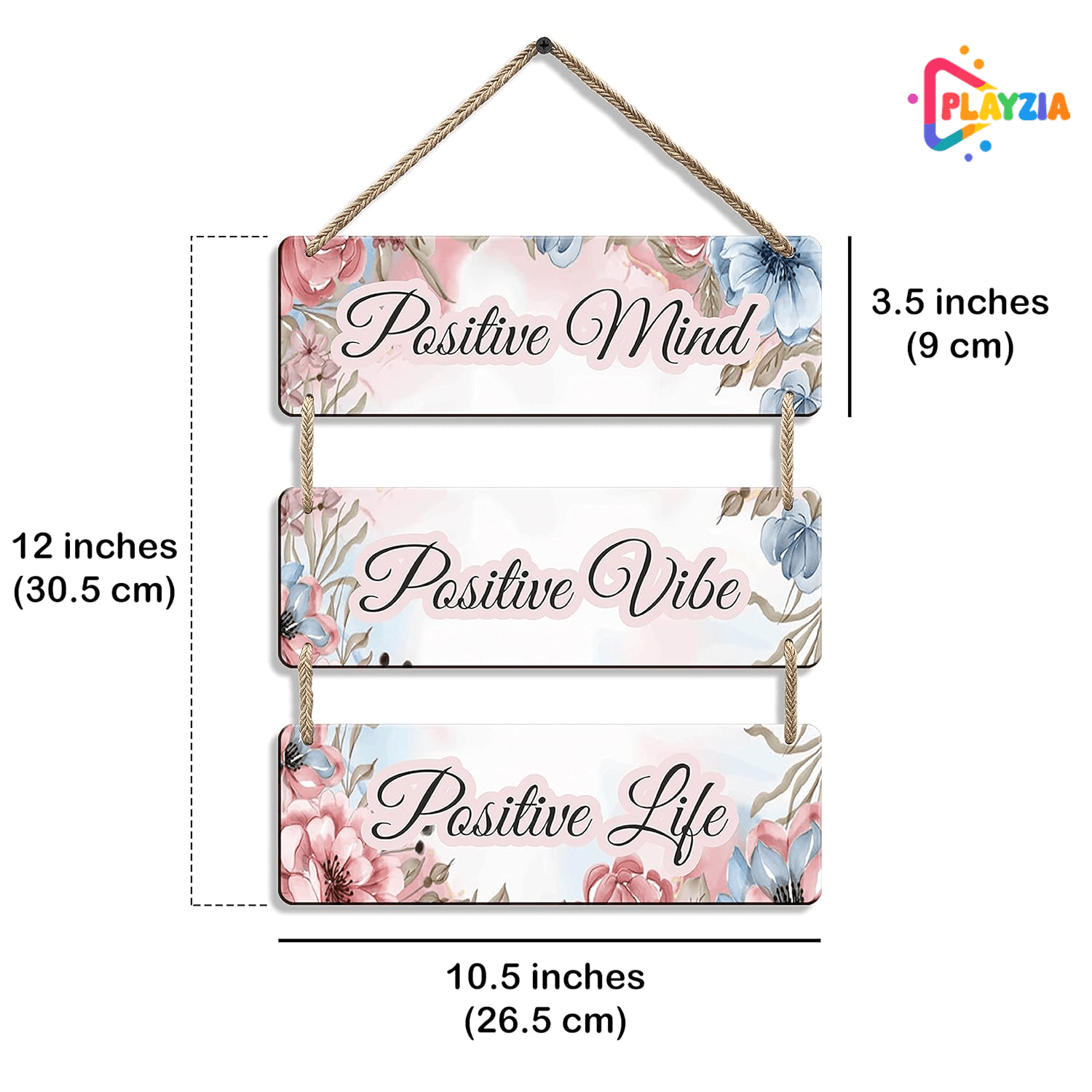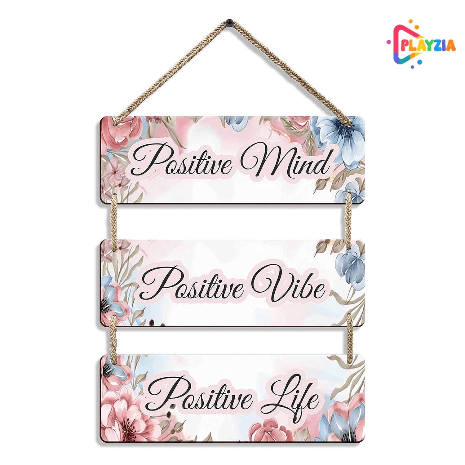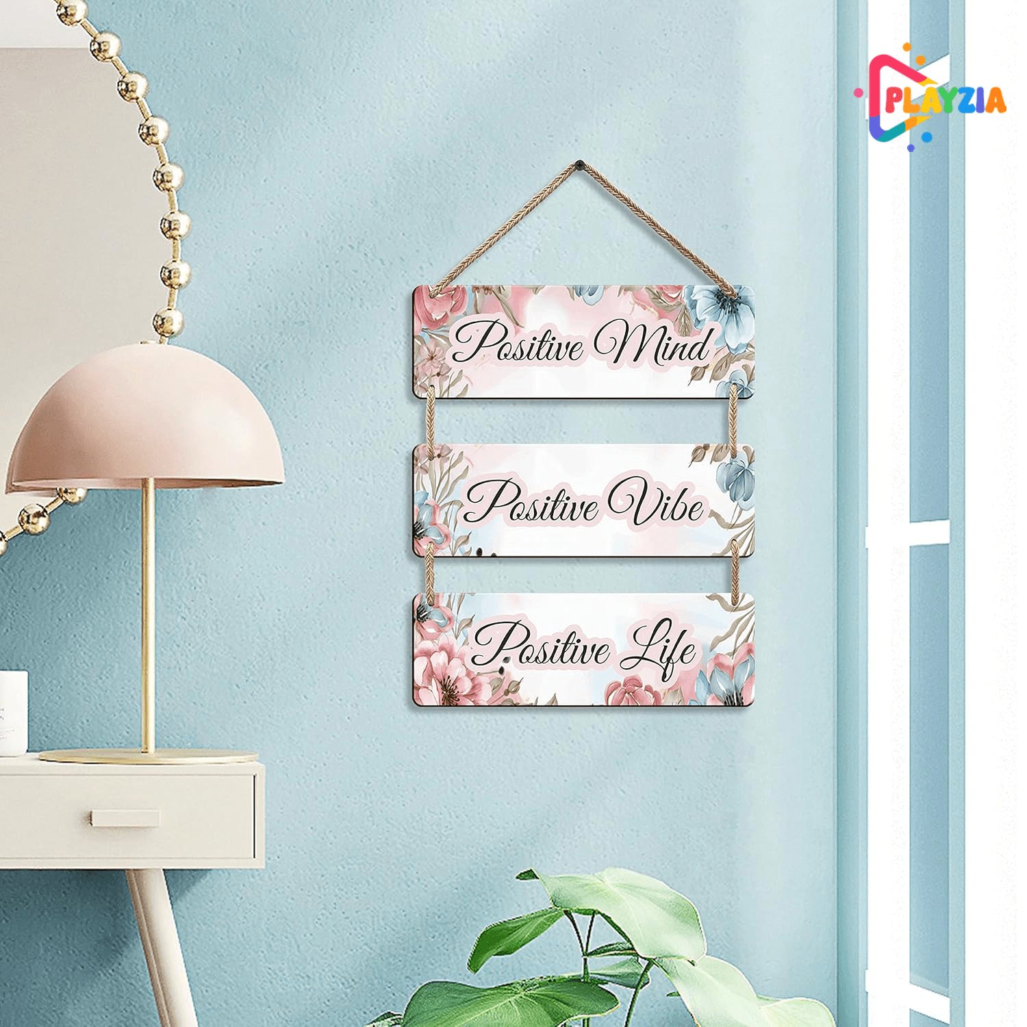 Playzia “Positive Mind • Positive Life” Wooden Wall Hanging | Motivational Wall Décor for Living Room & Bedroom | Decorative Home & Office Wall Art | Inspirational Room Decoration Item