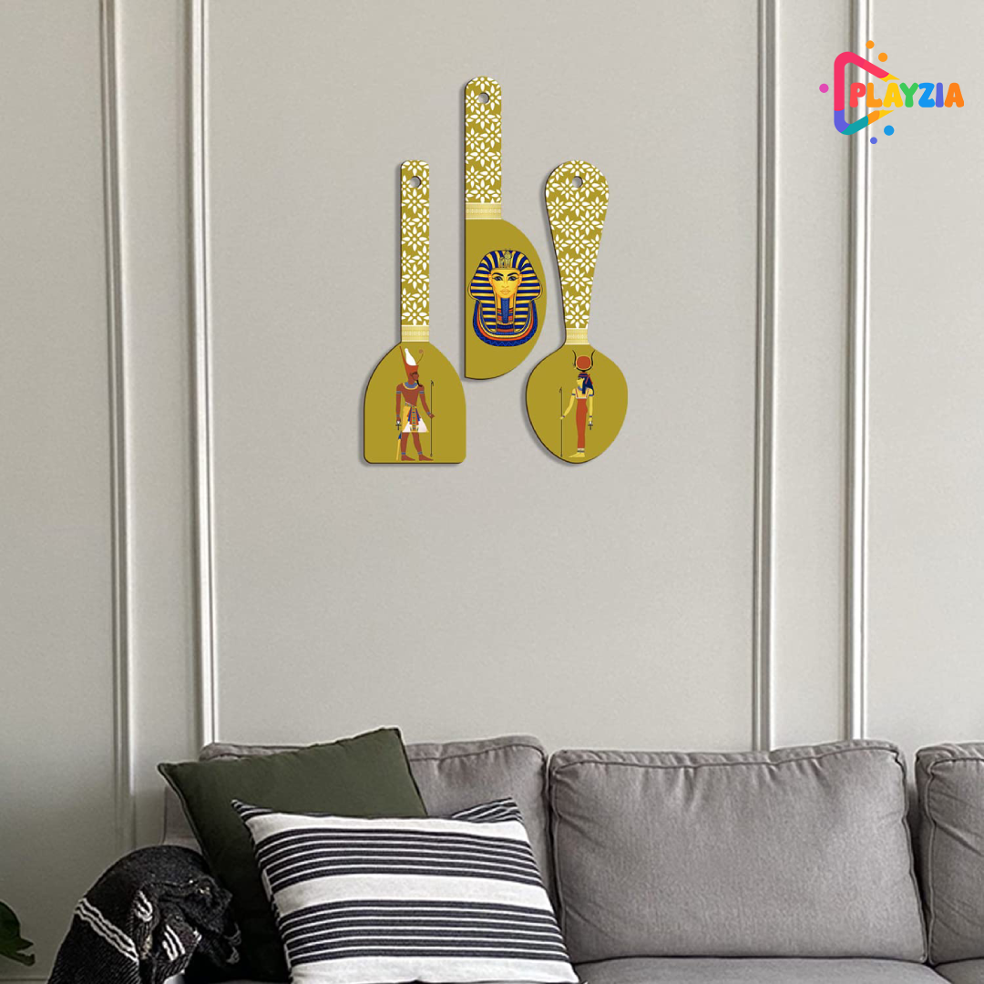 Playzia “Spoon Art” Wooden Wall Hangings | Modern Decorative Wall Art Panels for Kitchen, Dining & Living Room | Stylish Wall Décor for Bedroom & Office | Set of 3 (51 × 38 cm)
