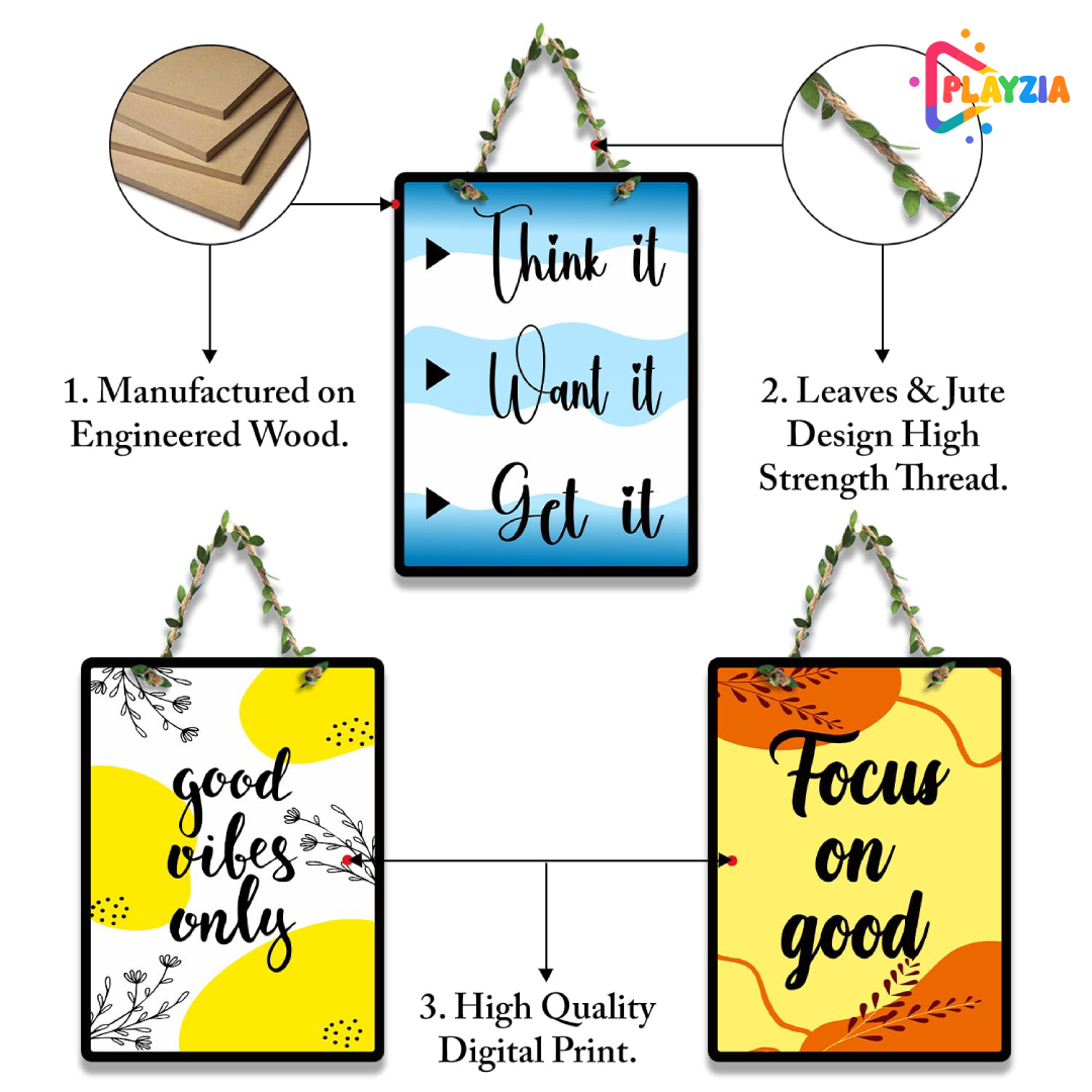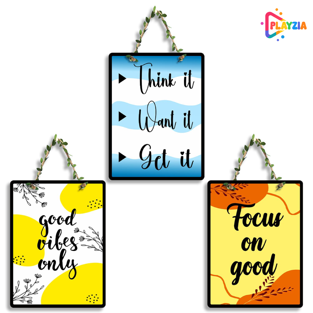 Playzia “Think It Want It Get It” Wall Hanging | 3-Piece Motivational Quote Decorative Wall Art for Living Room & Office | Stylish Modern Wall Décor Panels | Home Decoration Items (66 × 66 × 22.5 cm)