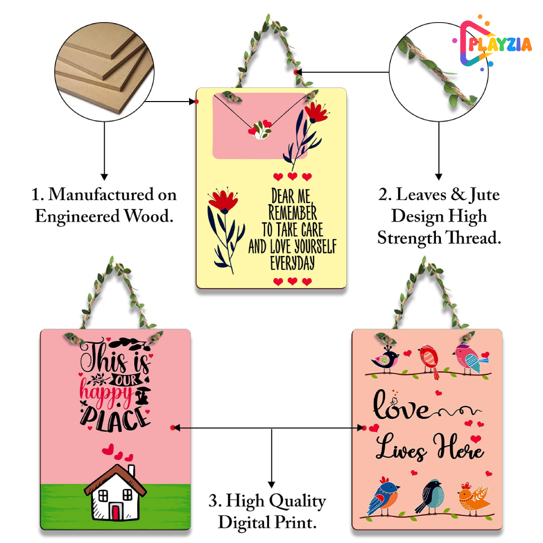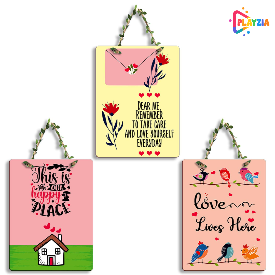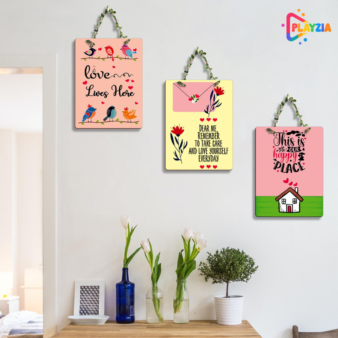 Make your home feel warm and welcoming with the Playzia “This Is Our Happy Place” 3-Piece Wall Hanging. Featuring a contemporary rectangular layout and refined typography, this décor piece adds a cozy and uplifting charm to living rooms, offices, bedrooms, cafés, and hallways.