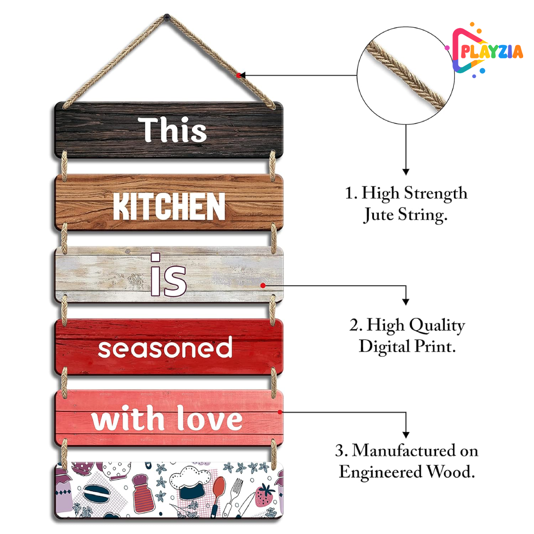 Playzia “This Kitchen Is” Wooden Wall Hanging | Motivational & Fun Kitchen Quote Wall Art for Living Room & Dining Area | 6-Layer Engraved MDF Design | Modern Decorative Wall Décor for Home & Office (30 × 10.5 × 2.6 Inch)