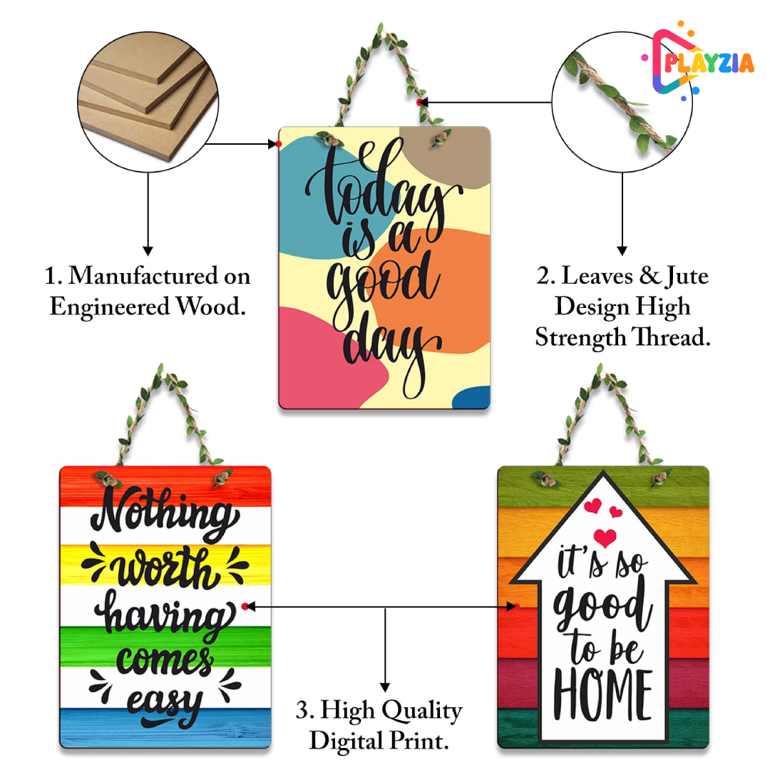 Playzia “Today Is a Good Day” Wall Hanging | 3-Piece Rectangular Decorative Wall Art for Home & Office | Stylish Living Room Wall Decoration | Modern Room Decor Frames (66 × 66 × 22.5 cm)