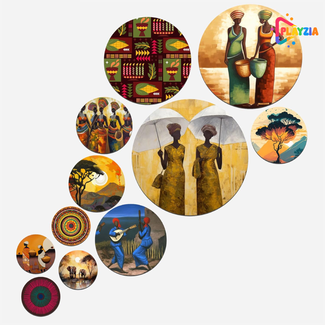 Bring the charm of rural artistry into your space with the Playzia “Village” Decorative Wooden Wall Hanging Set. Featuring 11 beautifully detailed wooden panels, this collection blends traditional village art with modern aesthetics — a perfect centerpiece for your living room, bedroom, or workspace.