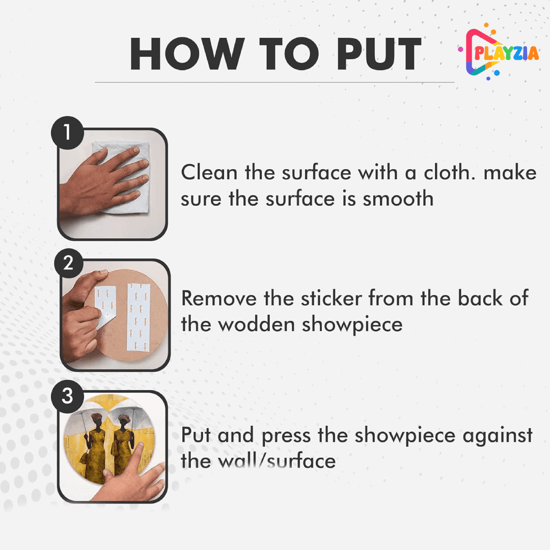 Keep your Playzia wall art looking new with simple care. Gently wipe with a dry or slightly damp soft cloth to remove dust. Avoid harsh chemicals, direct sunlight, and moisture to preserve the finish. Handle carefully during installation to maintain the artwork’s beauty for years.