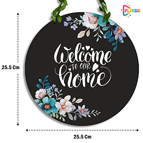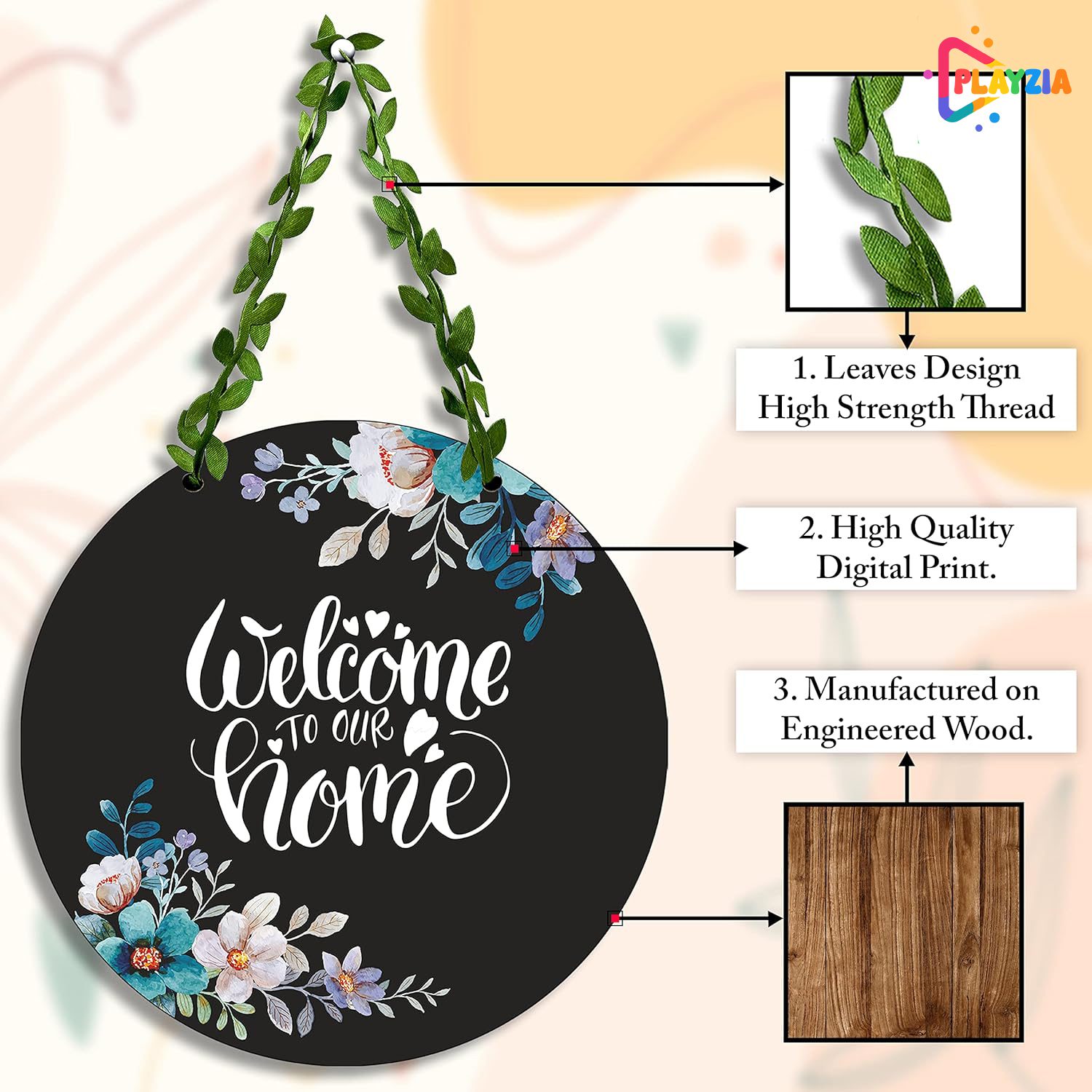 Playzia “Welcome to Our Home” Wall Hanging | Wooden Decorative Door Hanging | Welcome Home Wall Décor Item