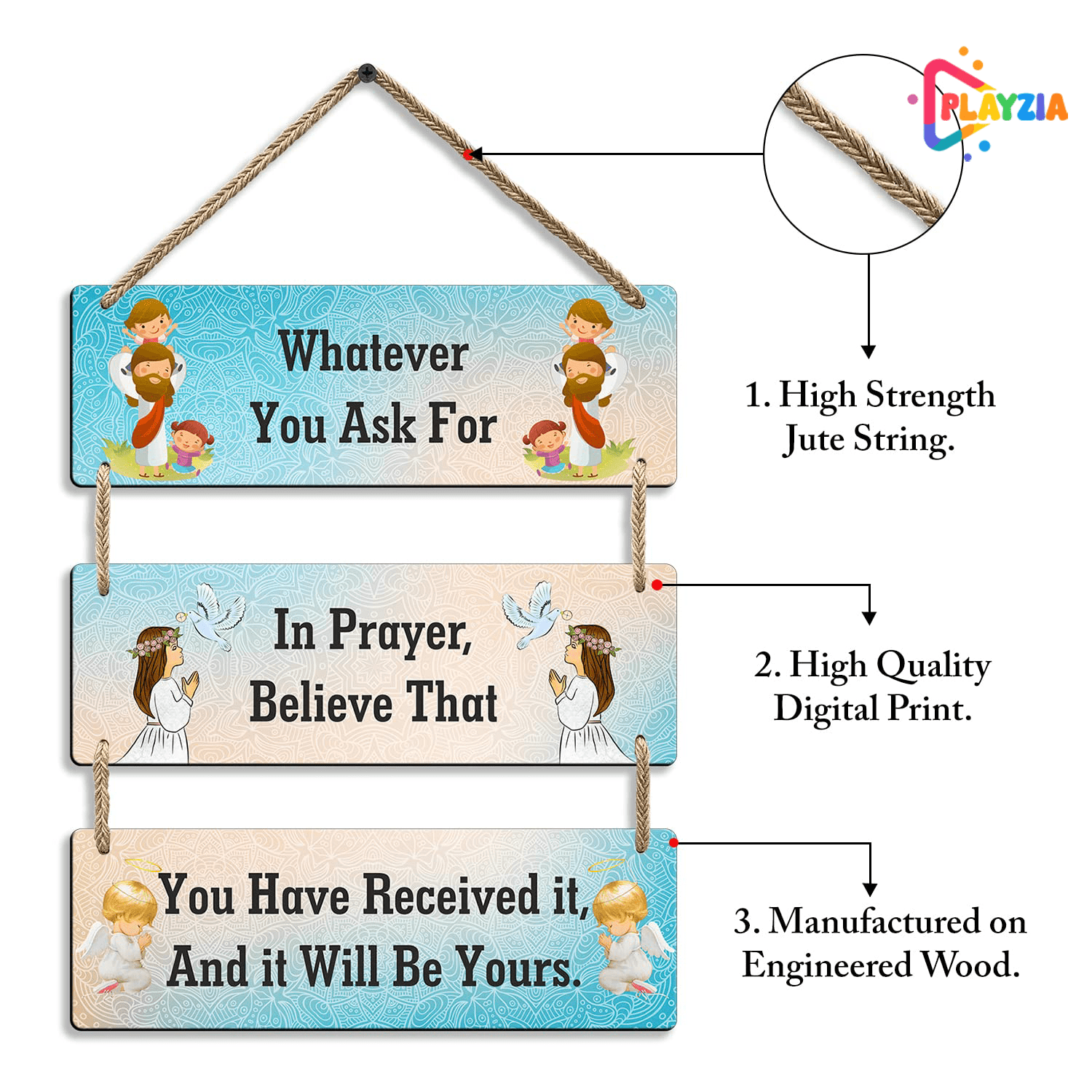 Playzia “Whatever You Ask For in Prayer” Wooden Wall Hanging | Jesus Quote Wall Décor for Bedroom & Living Room | Christian Wooden Wall Art for Home Decoration | Inspirational Room Decor Item