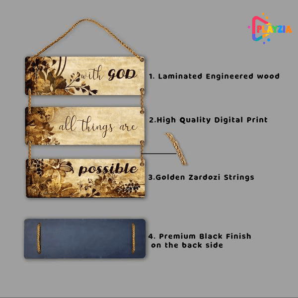 Playzia “With God All Things Are Possible” Wall Décor | Inspirational Quote Wooden Wall Art | Home Decoration Items for Living Room | Wall Decor Items for Bedroom & Office | Modern Christian Room Decoration