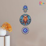 Playzia Designer Elephant Wooden Wall Hanging | Hamsa Hand Wall Décor for Home & Living Room | Peace Charm Door Accent